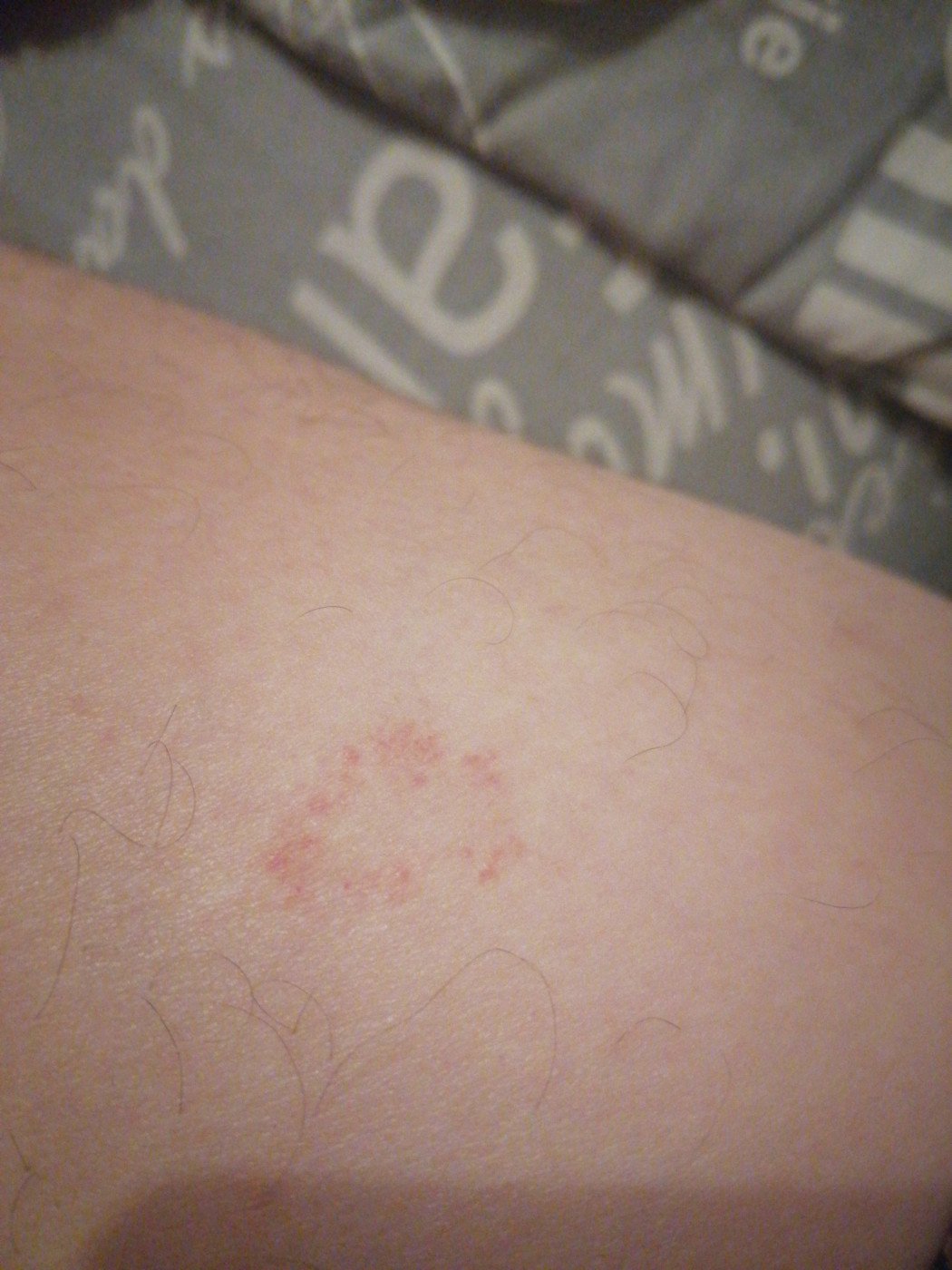 Появилась сыпь на торсе в субботу вечером, после душа (возможно была и до, но я не заметила). Сыпь чуть красноватая, пупырчатая, не зудит, не распространяется на лицо, шею, руки, ноги, паховую область, ягодица и подмышечные впадины.
