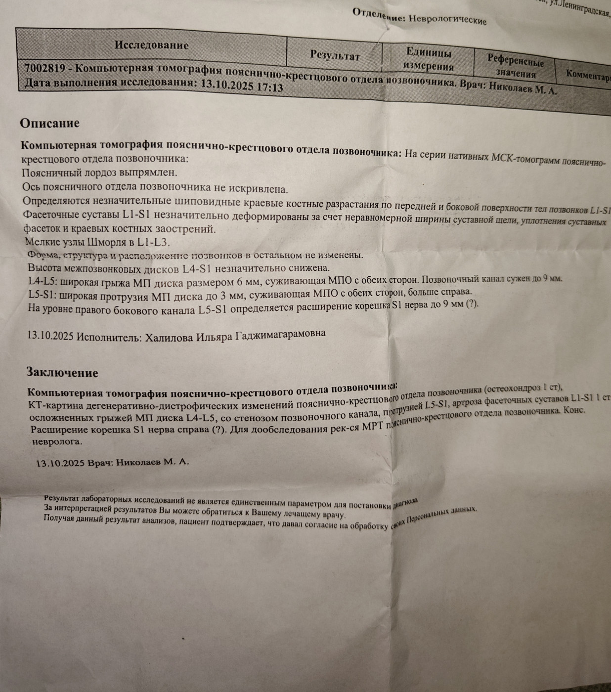 Результаты МРТ: