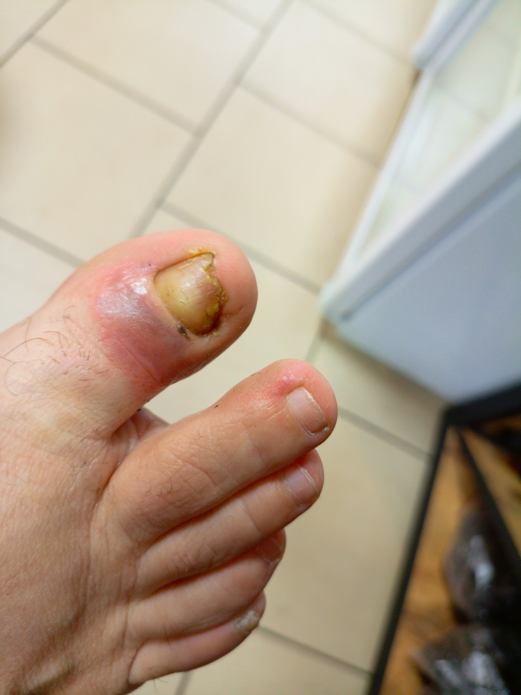 В августе этого года сломала первый палец на ноге. Перелом ногтевой фаланги. В сентябре сняли гипс. С тех пор ноготь вот такой. Палец при пальпации не болит.