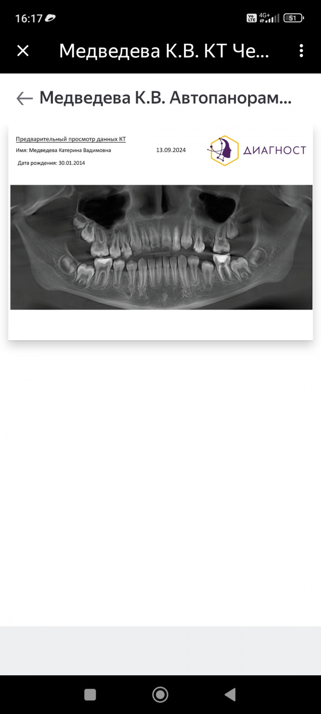 Здравствуйте. Моей дочке удалили в 10 лет хороший зуб вместо молочного, посмотрите пожалуйста зуб 2.5 видно ли это на снимке и что нам с ним делать не будет ли у неё деформация челюсти у неё спустя два года начинае быть промежутки на передних зубах. Хотя было все хорошо. И прикрепили до удаления со смотрового кабинета посмотрите пожалуйста что значит буква написанная над этим зубом.