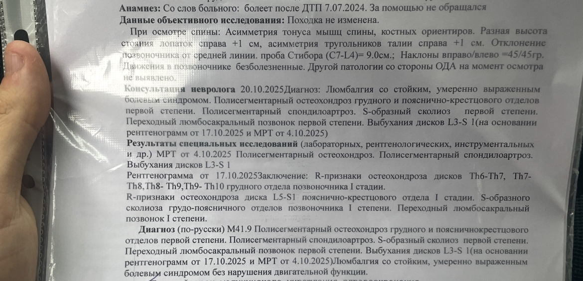 Люмбалгия со стойким, умеренно выраженным болевым синдромом.