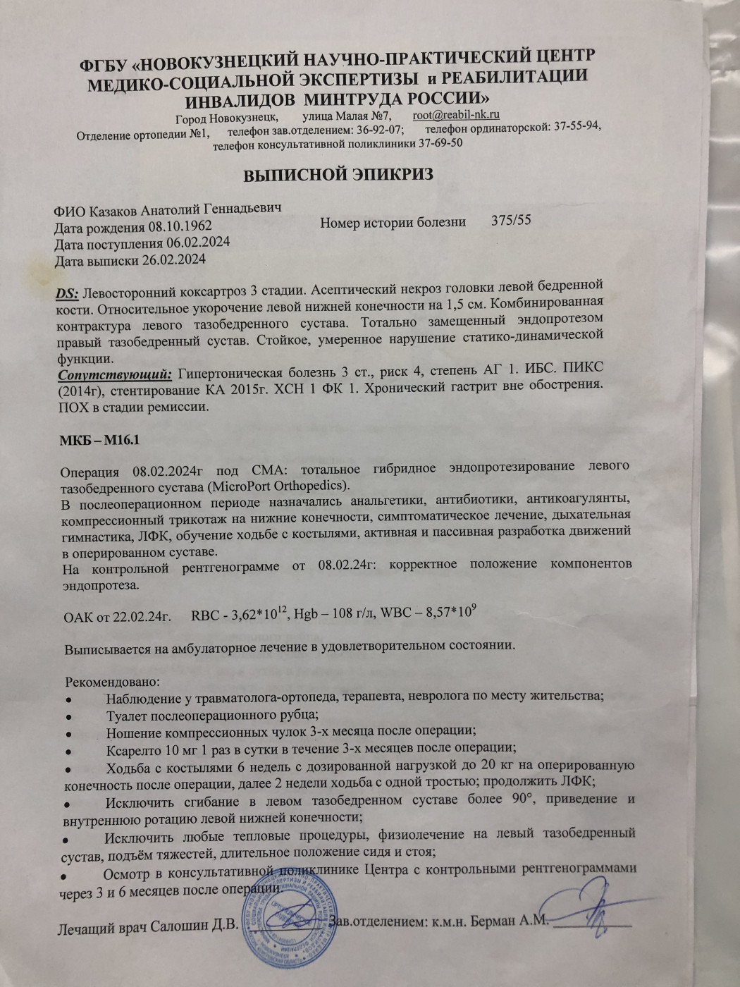 Боль в ногеПосле эндопротезирования обеих ног появилась боль при ходьбе и повороте лёжа,есть снимок рентген, мрт и скт не делают, ссылаясь на неэффективность, можно ли мне помочь? |