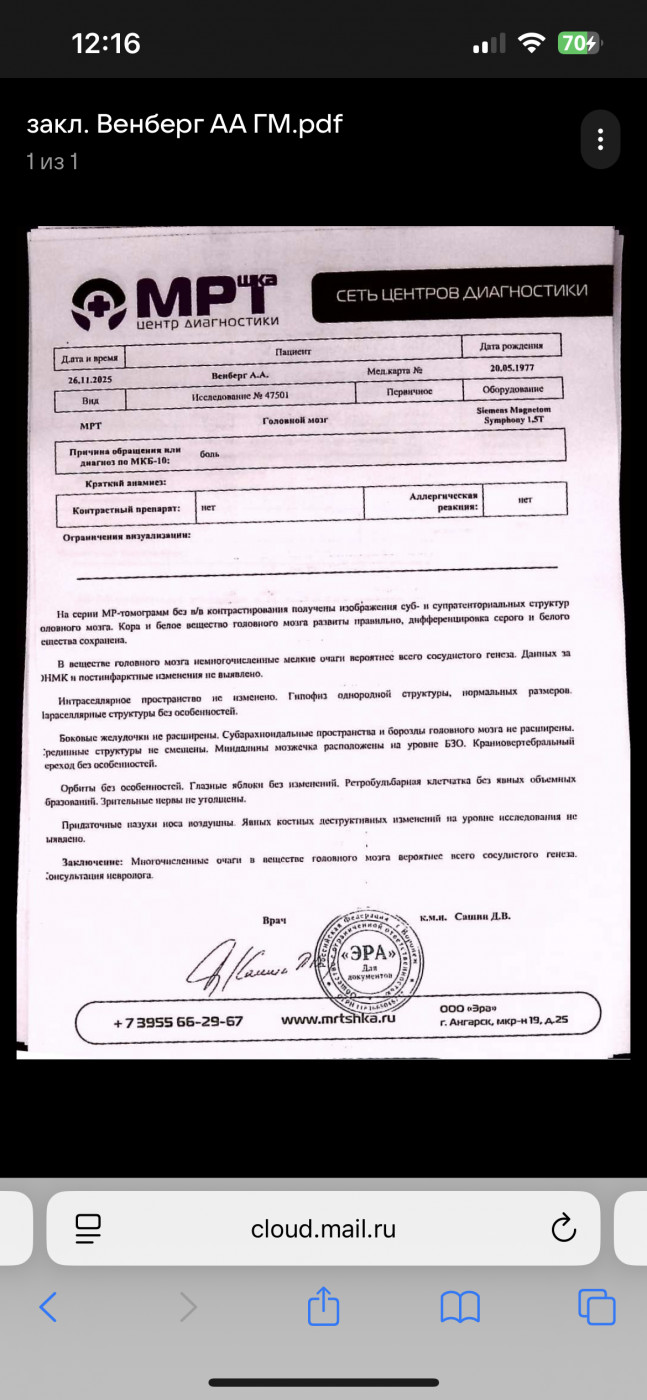 Добрый день! Прошла МРТ, расшифруйте, пожалуйста, что значит в описании "в белом веществе преимущественно правого полушария головного мозга определяются округлые очаги без четкого контура, гиперинтенсивные на Т2 ВИ, размером 4-5мм (лейкоариоз). В области средней трети фалькса визуализируются гиперинтенсивный на Т1 ВИ и изоинтенсивный на Т2 ВИ участок,… |