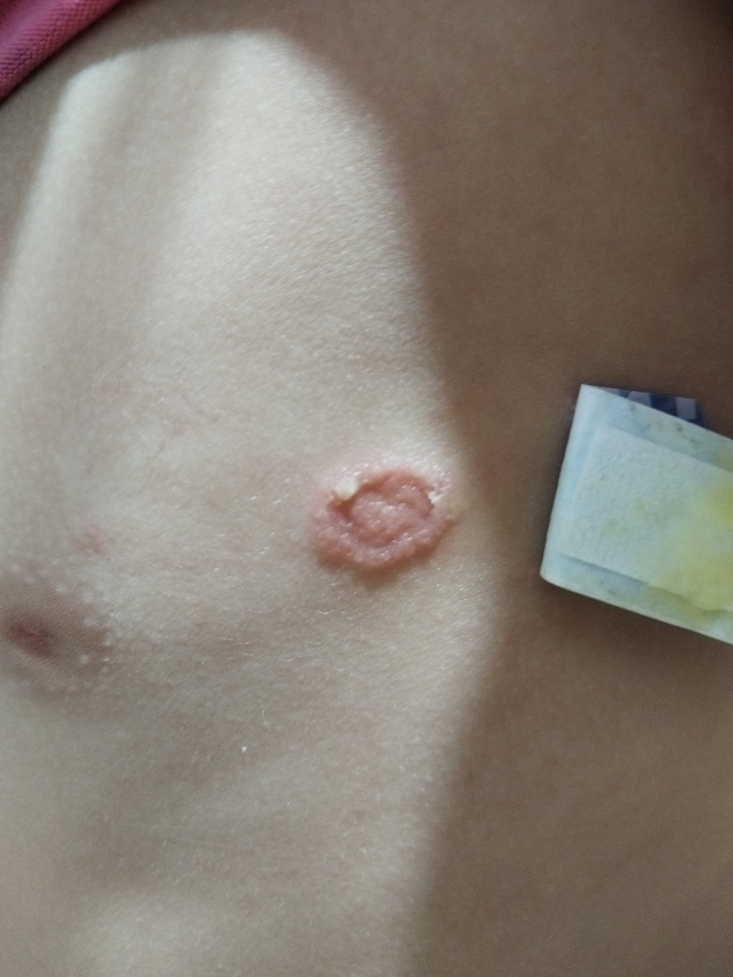 Болячка на телеУ дочки 6 лет, 3 дня назад появилась болячка? Это лишай? Что делать? Чем лечить? Запись к дерматологу только через 2 недели |