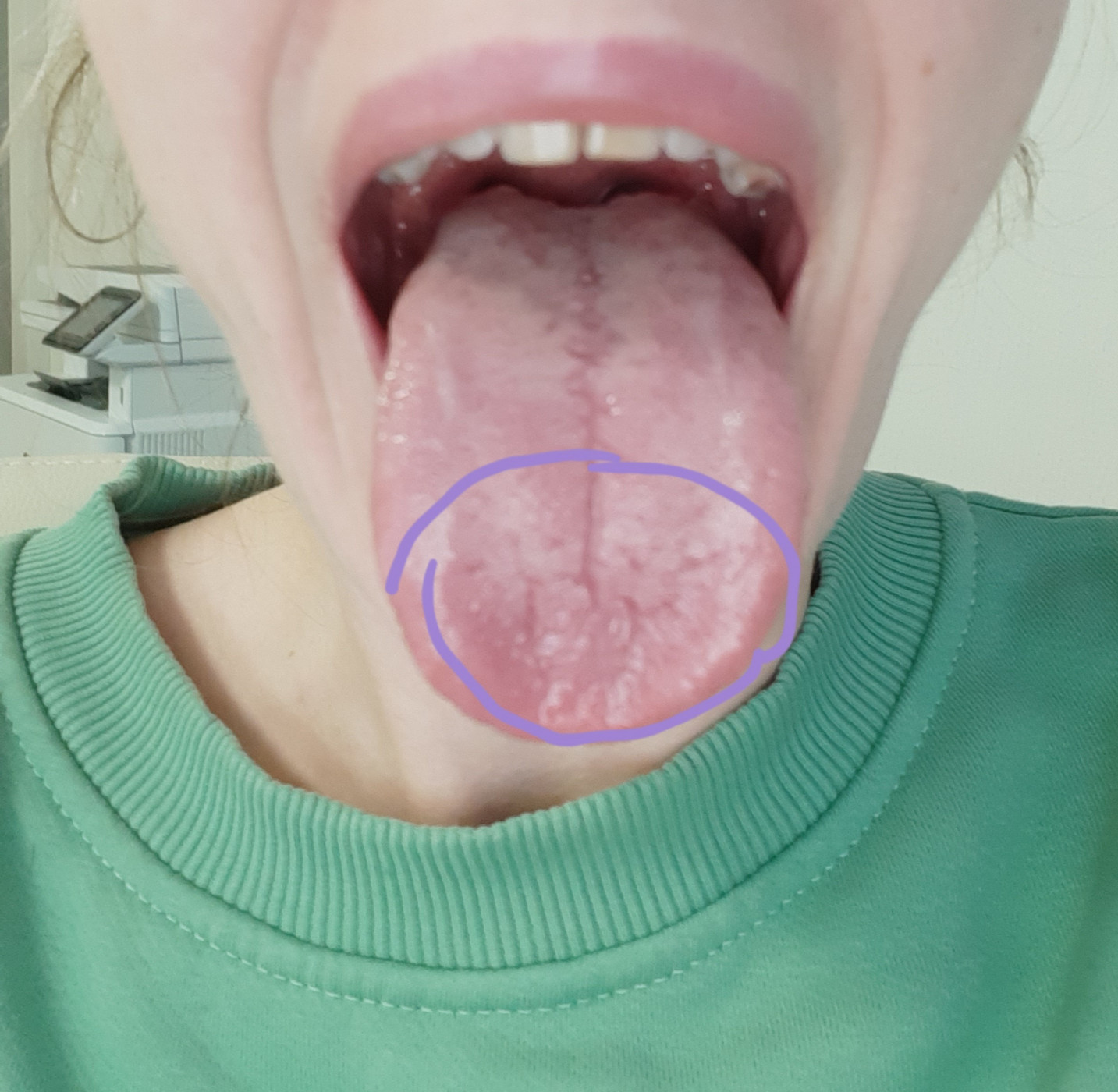 Что с языком?На языке пару дней назад почувствовала точку, думала что это крошка, но не убиралась |