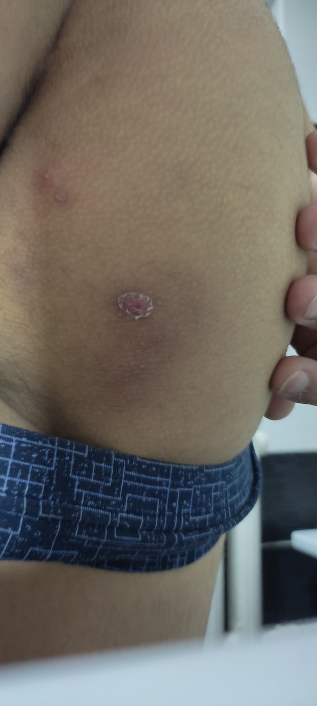 Недавно болезненно побрилась. На большой половой половой губе появился, как я думала, прыщ. Он не выдавился. Я смазала йодом. И на протяжении дня мазала его йодом. Сейчас кожа с этого места слезла, осталось воспаление.