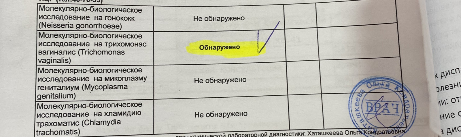 На первом анализе не обнаружена трихомонада или не проверяли?