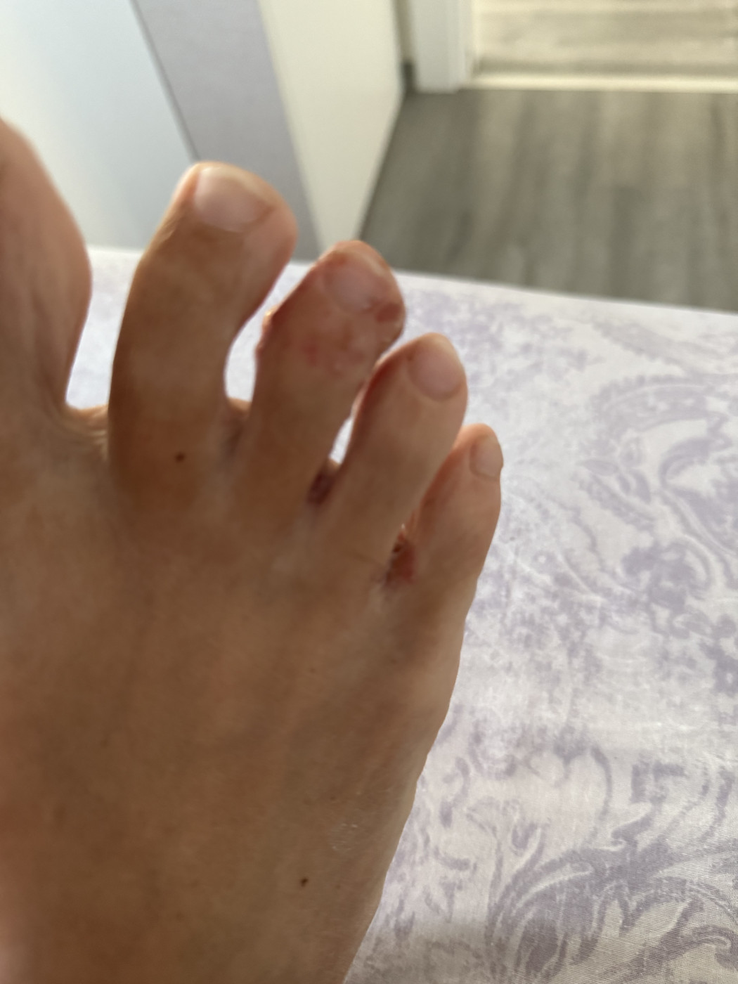После мытья мочалкой на руках появляются тёмные коричнево-лиловые пятна