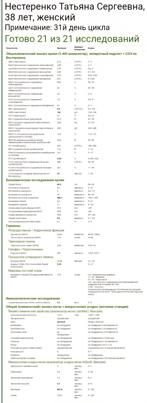 Нужна расшифровка анализов