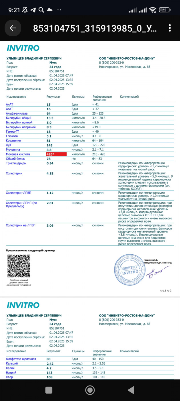 Здравствуйте. Повышение мочевой кислоты незначительное, описание для подагры не характерно. Посетите врача-хирурга очно, выполните снимки стопы для исключения шпоры. |