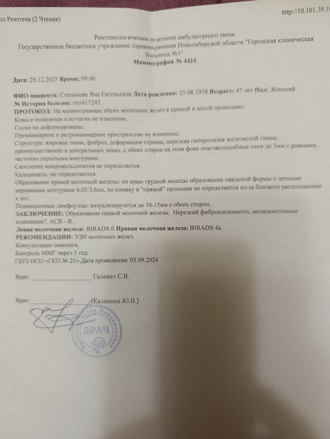 Фиброаденома правой МЖ, BIRADS 4A