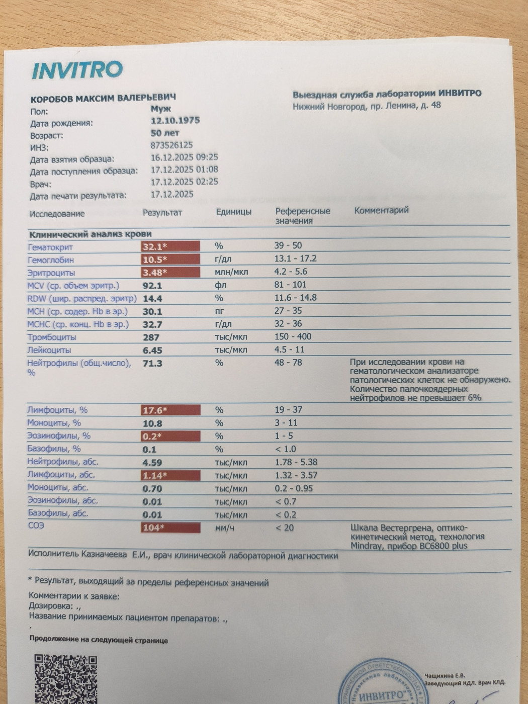Здравствуйте. Может быть целесообразно сначала скорректировать уровень гемоглобина. Для полноценной интерпретации результатов обследования необходимо иметь всю информацию, в том числе данные анамнеза, жалобы, клиническую картину, данные других анализов и обследований. |