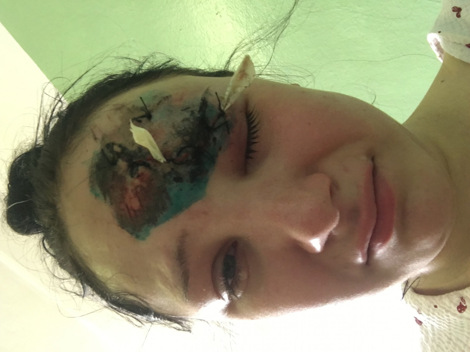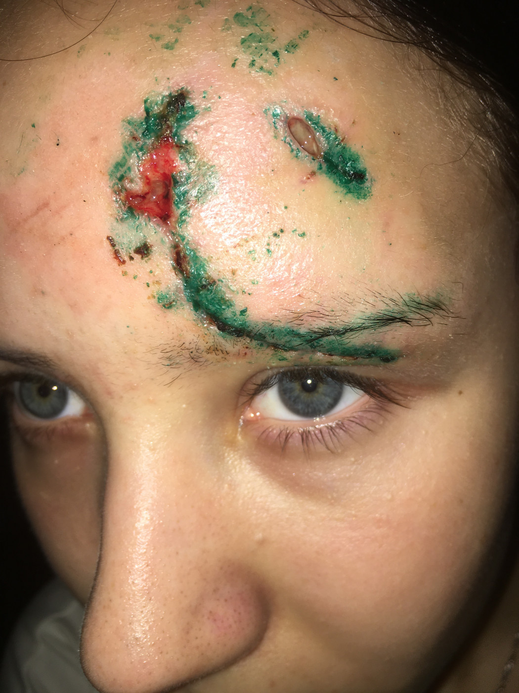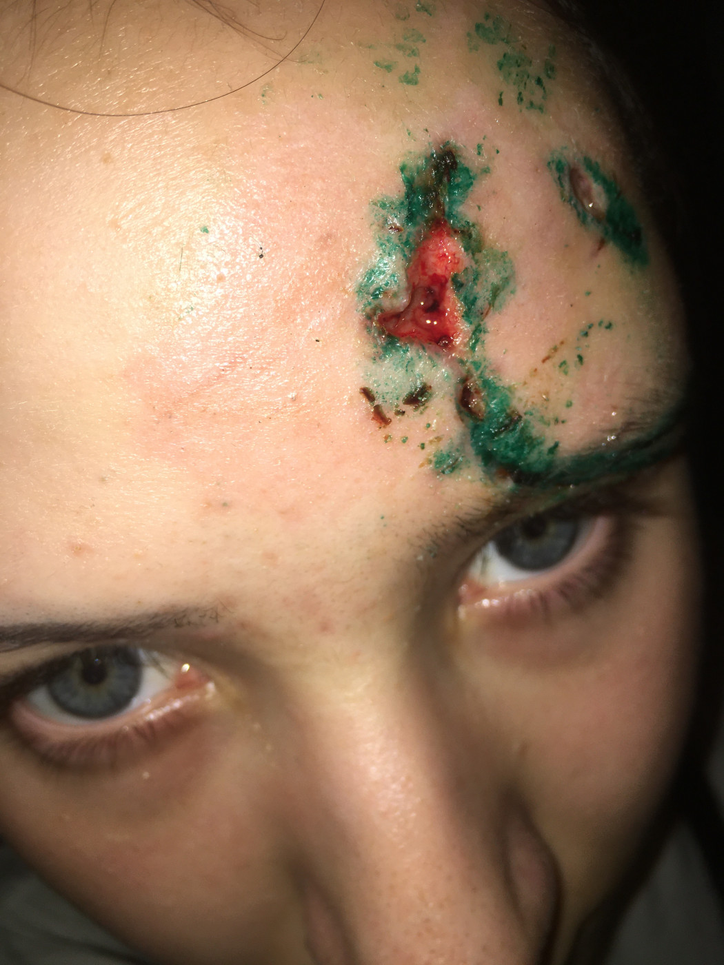 Вероятнее всего разошёлся шов на лбу