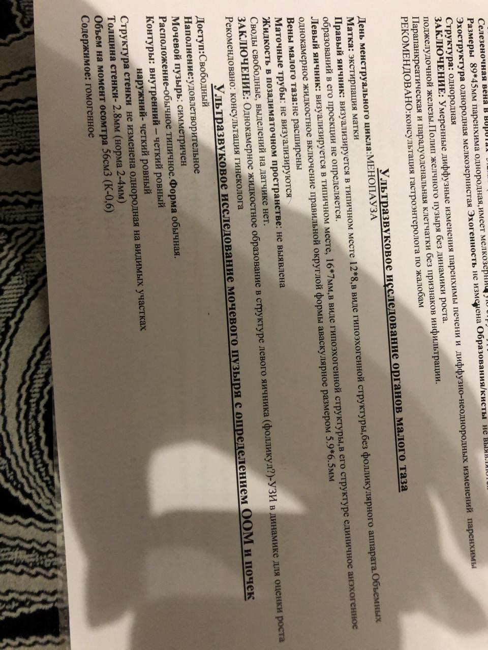 Правый яичник: 32 х 24, в нем гепатогенная зона неправильной… |