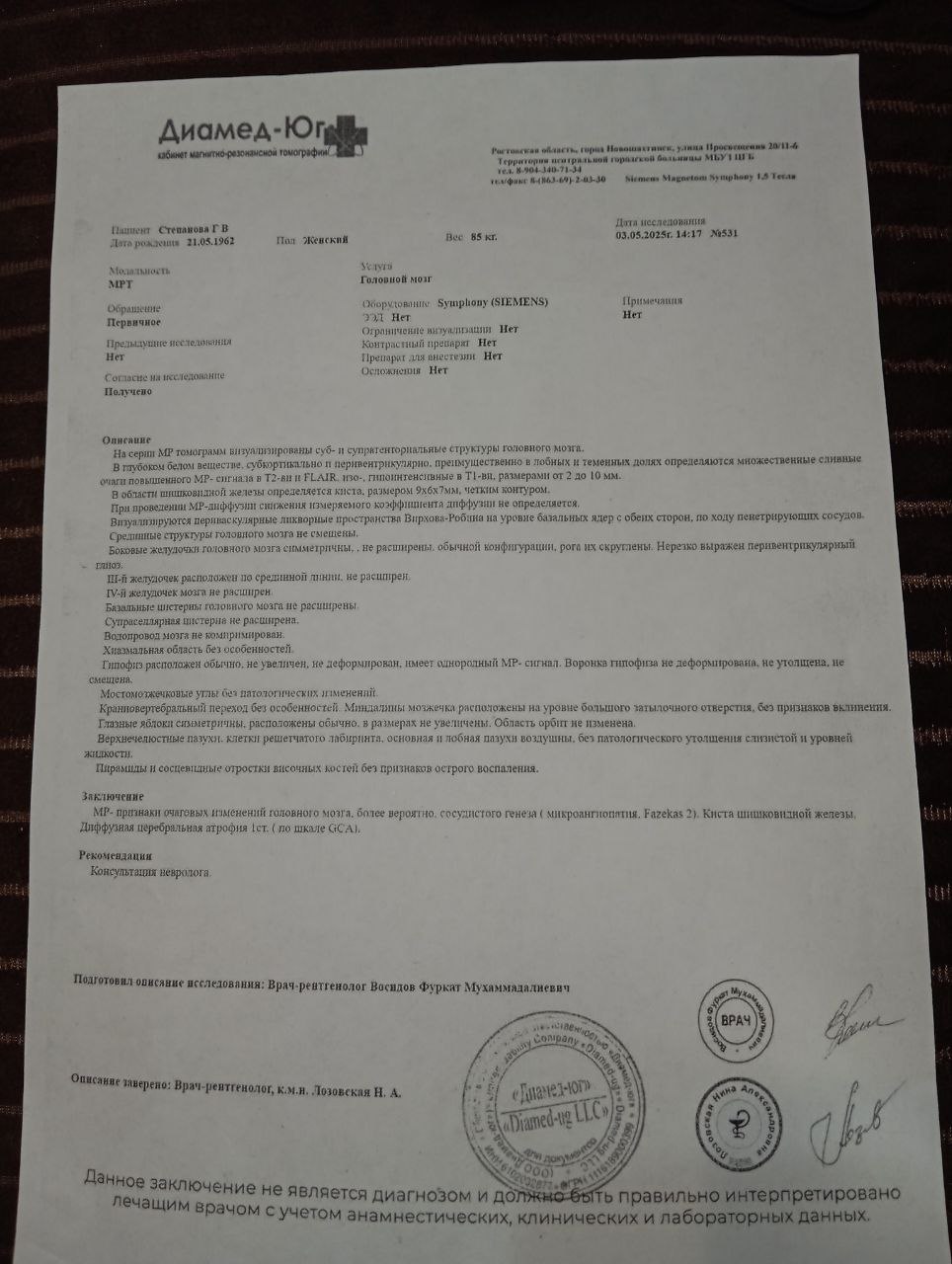 Киста головного мозгаНа МРТ у мамы обнаружили кисту головного мозга, при повторном обследовании выяснилось,что она увеличилась.Я так понимаю,что нужна операция.Подскажите,пожалуйста. |