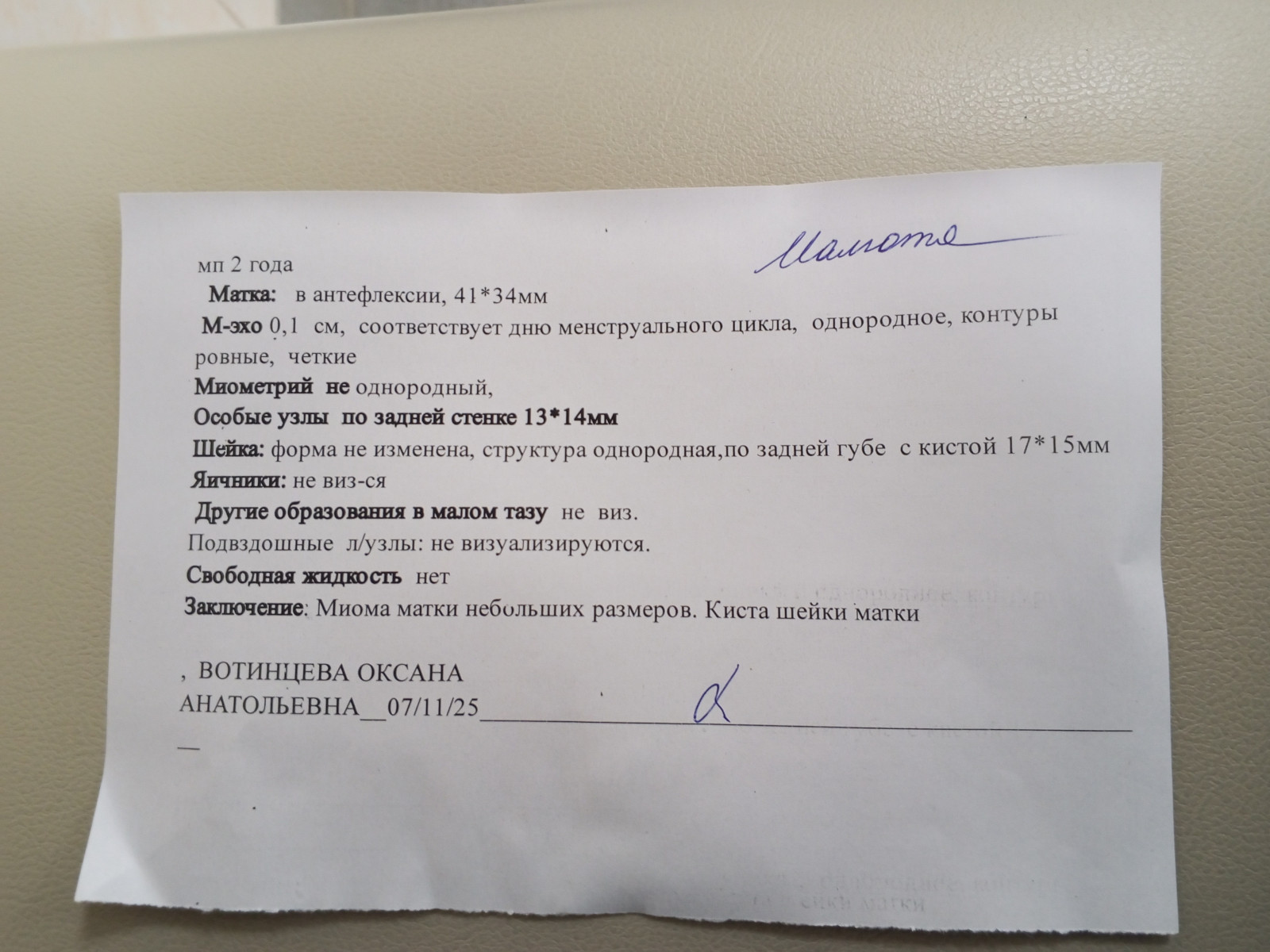Расшифровка УЗИ, миома