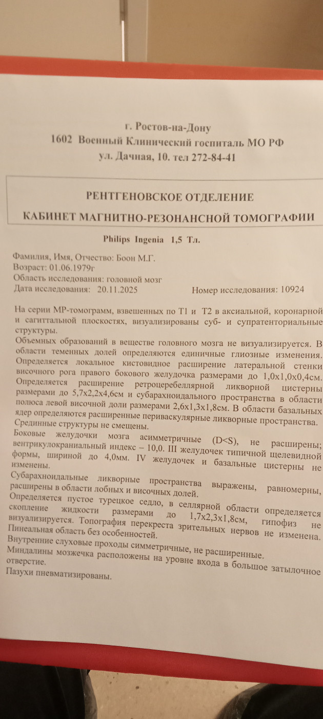 Киста в сантиметрах, что может случится?Здравствуйте.Муж сво Соч.В госпитале делали МРТ у него за год киста выросла в размерах до сантиметров + много жидкости чем должно быть.Чем это плачевно и могут ли списать с войны с такой проблемой? |