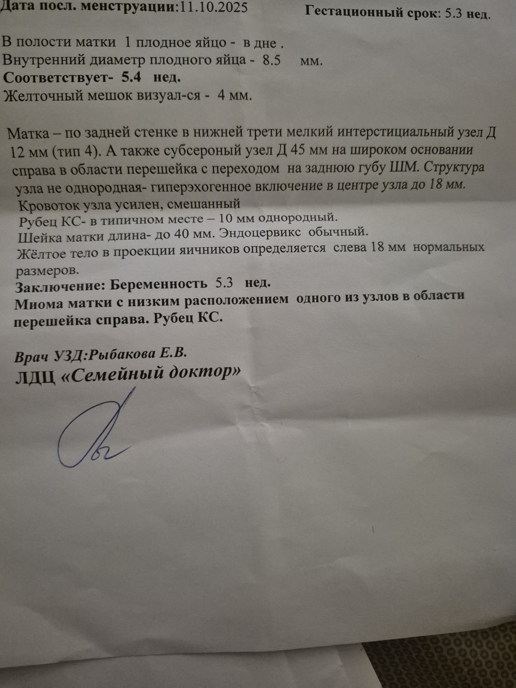 Миома при беременностиДобрый день,беременность 5.5 н,миома 45мм субсерозная на широком основании в области перешейка переходящий на заднюю губу ШМ,структура неоднородная,гиперэхогенное включение в центре 18мм,как же быть в моем случае |