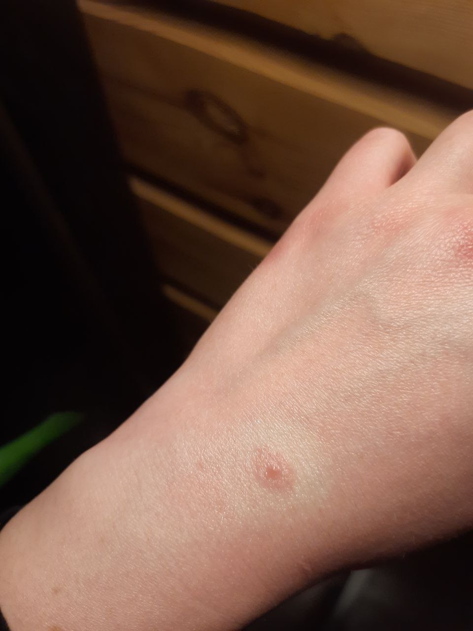 Здравствуйте, может ли это быть укусом клеща?Появился прыщик обычный несколько дней назад, не болел, не чесался, а сегодня как будто ободок красноватый. |