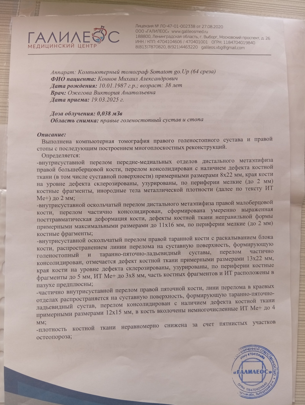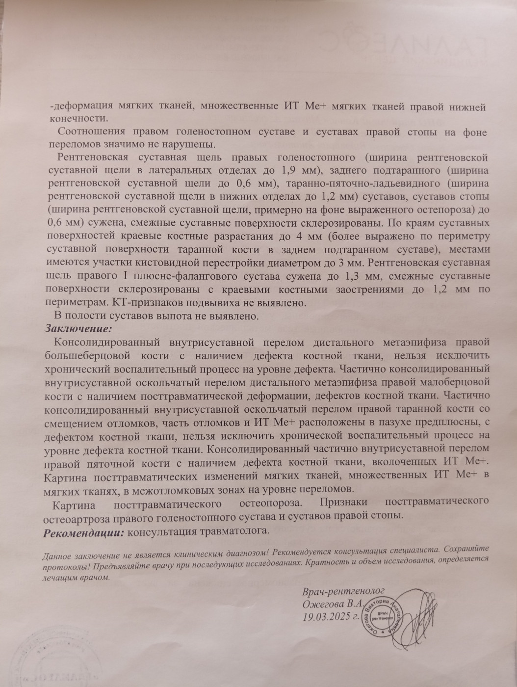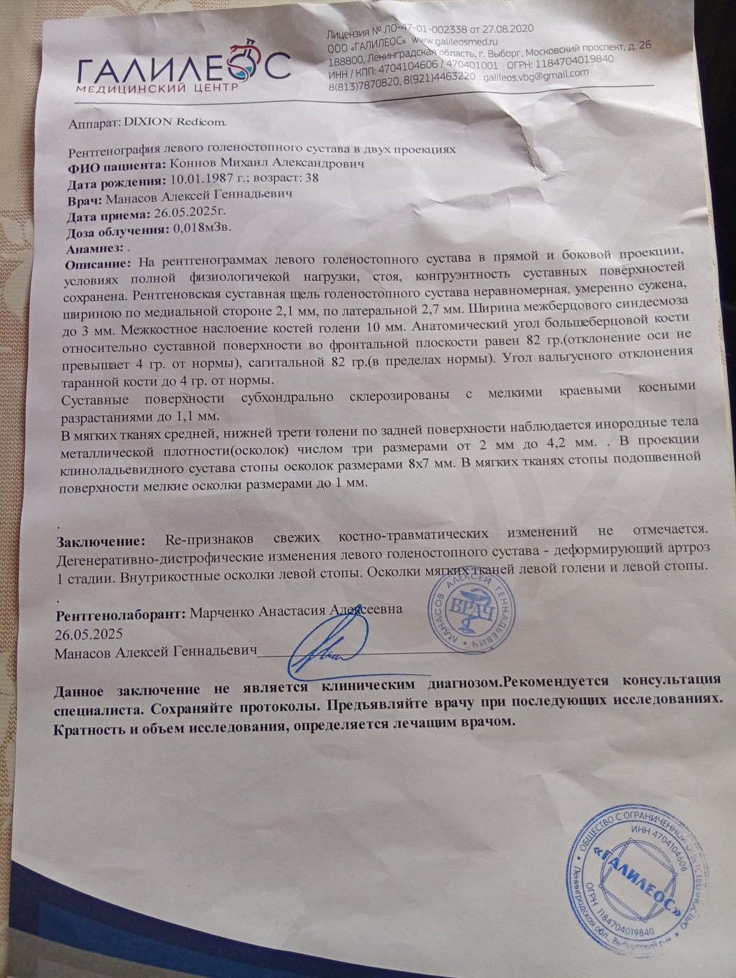 До этого делала рентген в другом медицинском учреждении, в заключении сужение суставных щелей на 40 %, артроз второй стадии таранно-ладьевидного… |