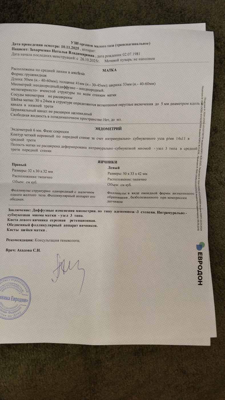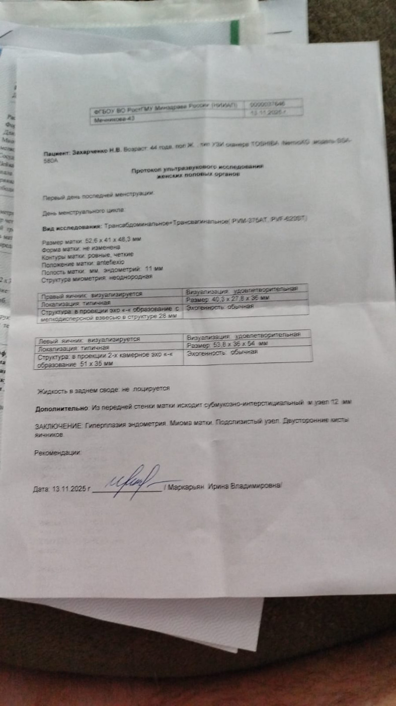 Вопросы по лечению миомы и кисты яичника