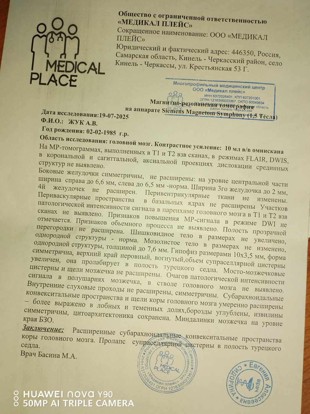 Добрый вечер, мое заключение в исследовании головного мозга МРТ: Синдром" пустого турецкого седла" и расширение ликворных пространств зрительных нервов,являются признаком внутричерепной гипертензии. Умеренное извитие базиллярной артерии в интракраниальном отделе. Мои симптомы: немного пошатывает, чувствую пульсацию в голове без боли, когда стоя на месте… |