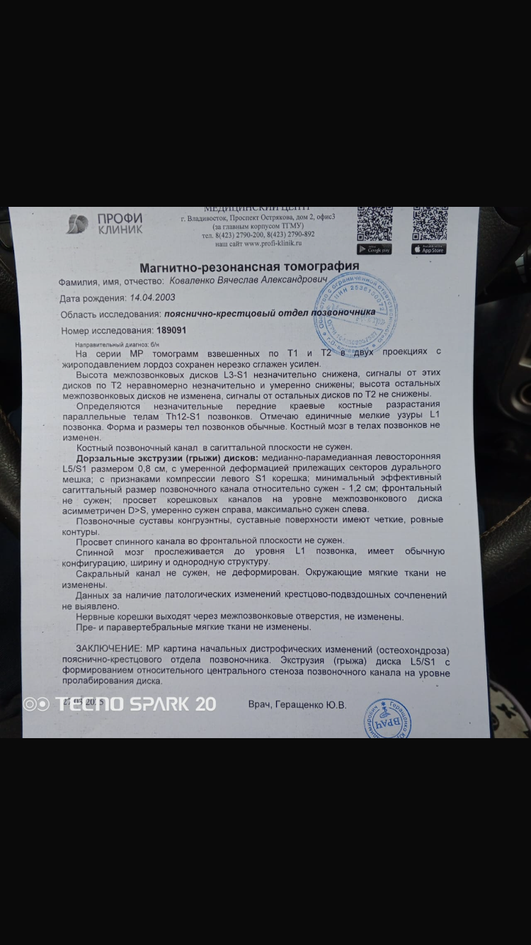 Результат МРТ пояснично-крестцового отдела позвоночника