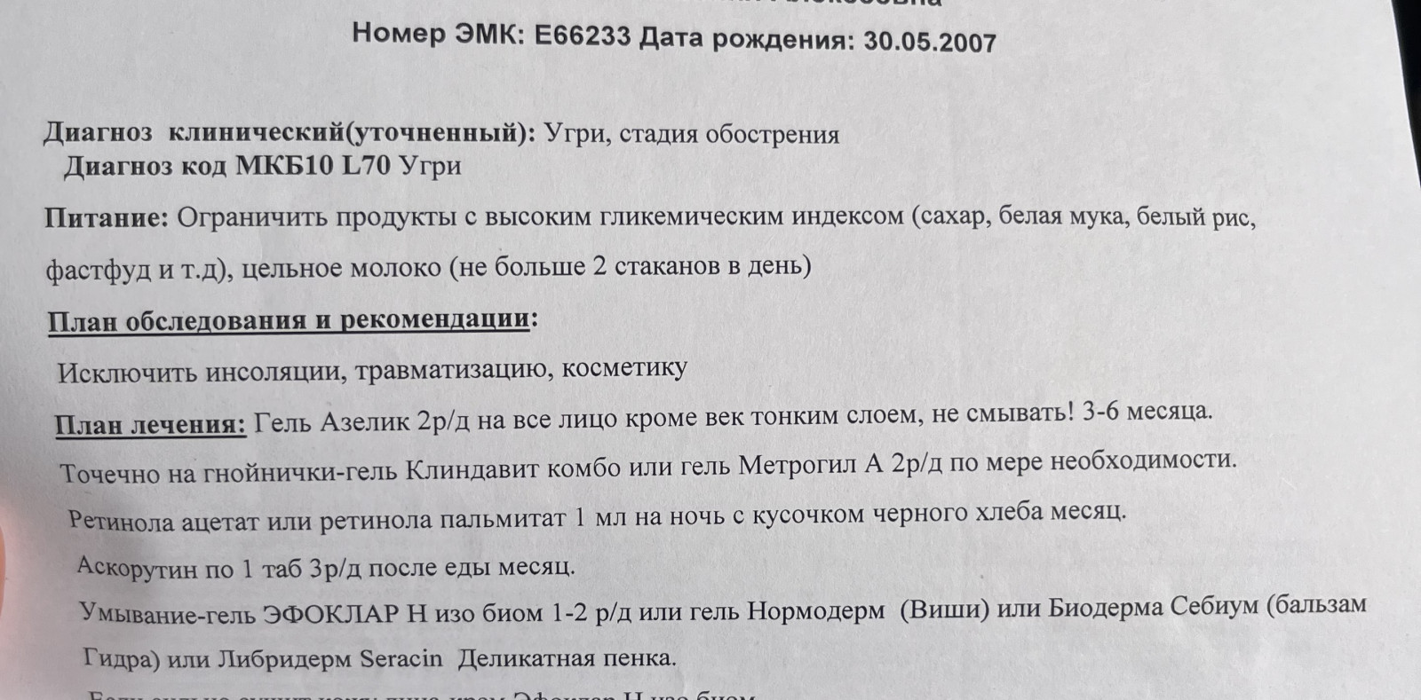 Не проходят угриПолтора месяца назад ходила к дерматологу, прописала лечение(ниже прикрепила фото), стало только хуже, я думала до нового года почти всё пройдет и в итоге остается месяц и у меня на лице такое, подскажите что делать? |