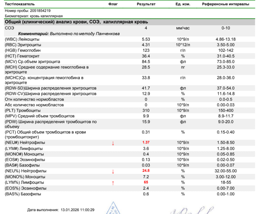 уже полгода по анализам нейтрофилы снмжаются сейчас 45. 8% а повышаются лимфоциты 45.4 % соэ 2 . что означают эти показатели? Прокомментируйте пожалуйста.