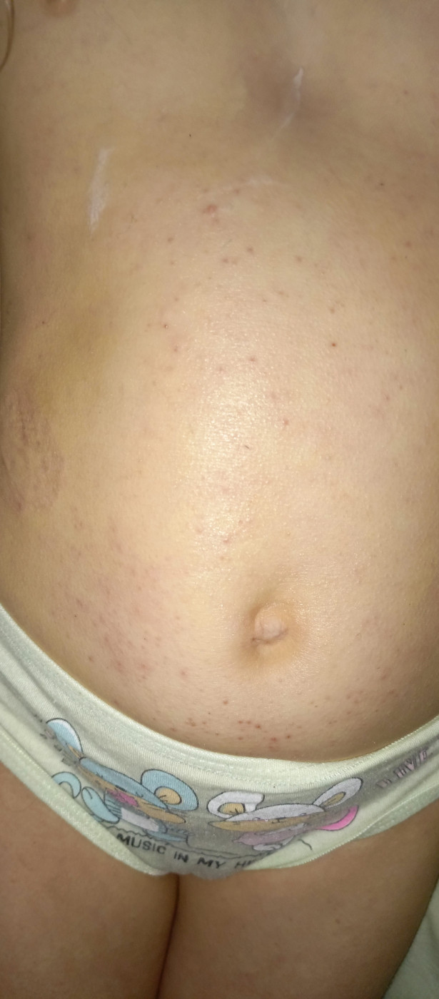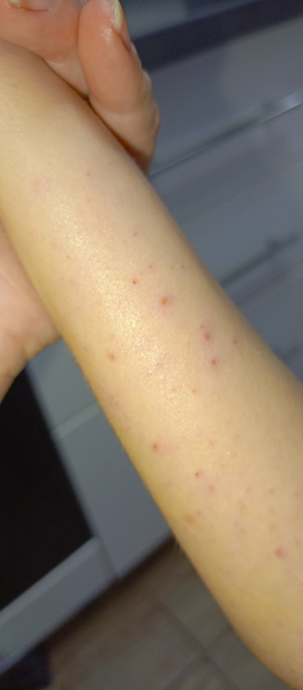 Здравствуйте. Неделю назад появилась странная сыпь, сначала была на шее, просто сыпь, не чесалось. Я думала аллергия, выпила супрастин. Днем заметила, что немного сыпи уже есть на ключице и животе. Постепенно она распространилась на спину, и стало ее больше. Происходило буквально все дня за два. вот уже неделю в таком вот состоянии, и стало чесаться....… |