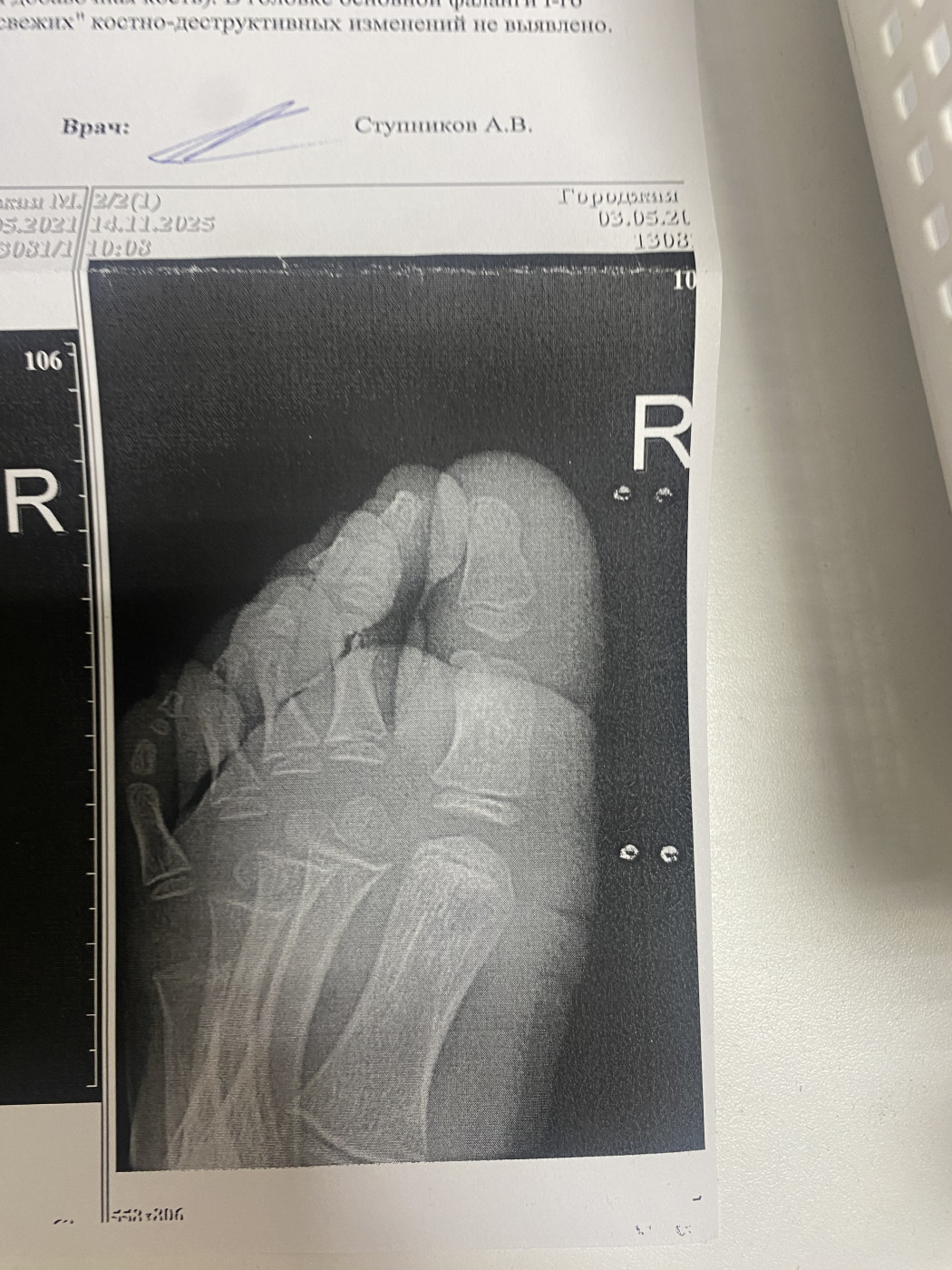 Подскажите нормально ли срослось, оскольчатый перелом большого пальца?Ребенок сломал большой палец, после перелома прошло больше 3 месяцев. Срослось в норме? |