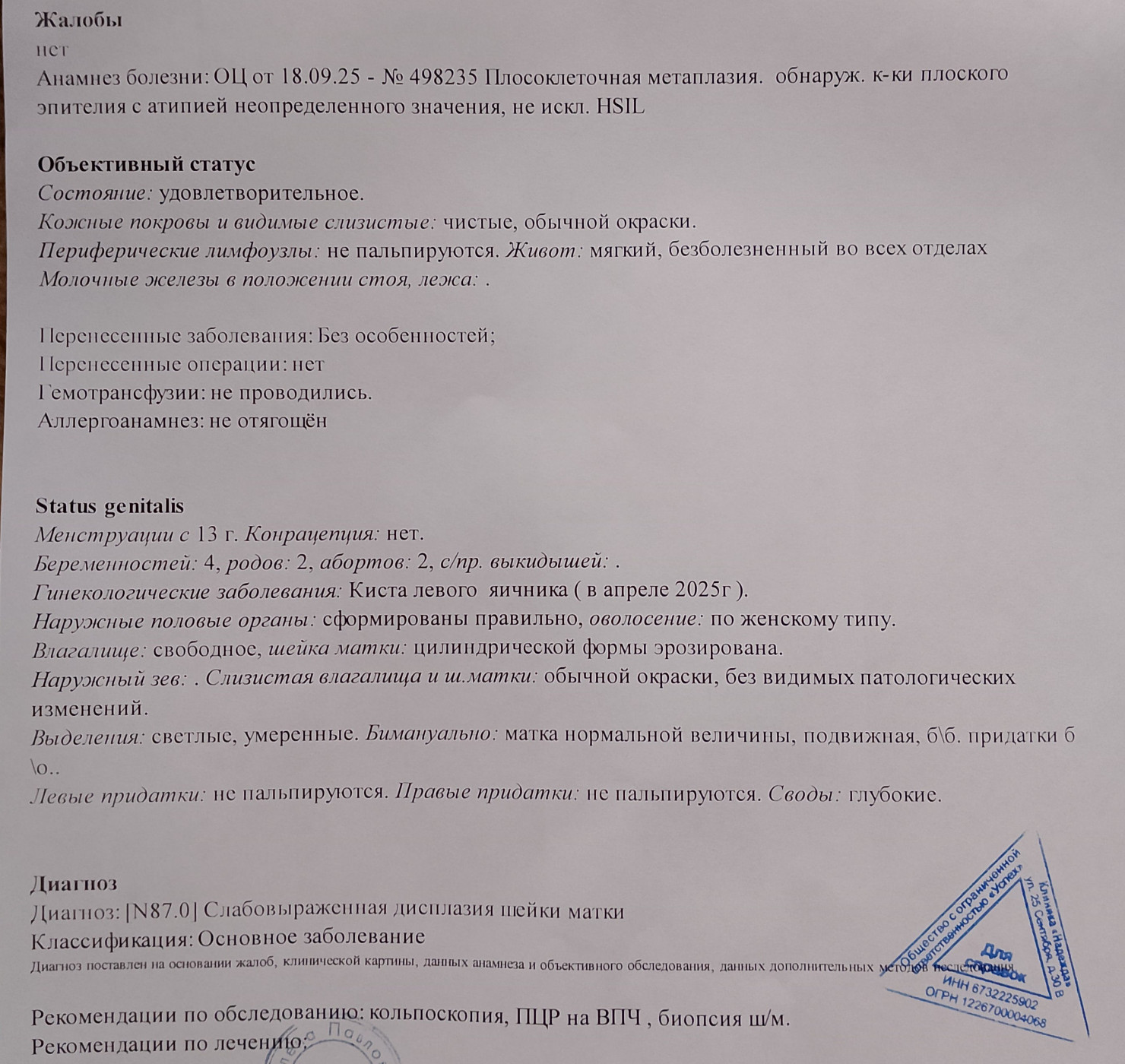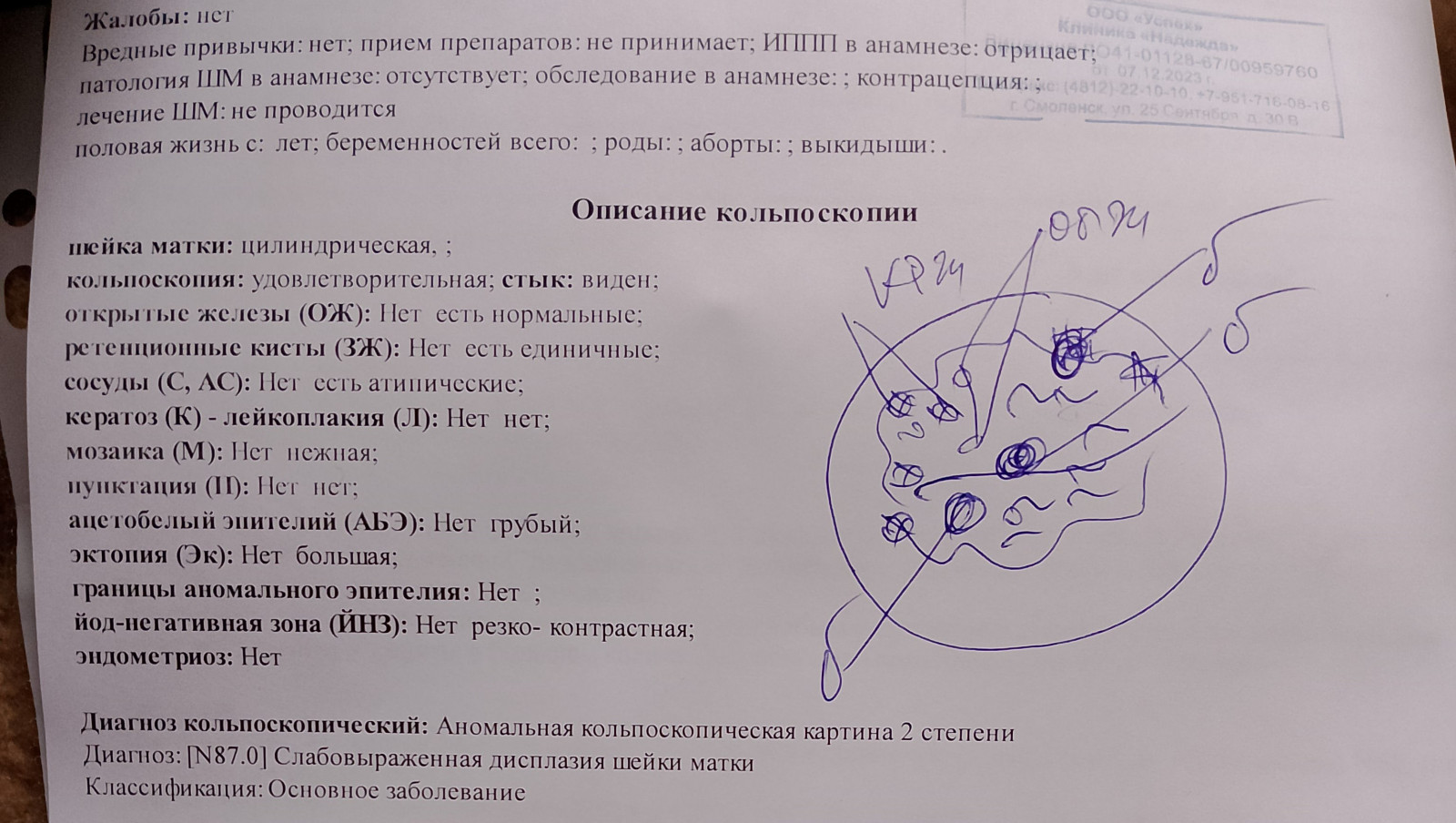 Биопсия шейки матки результат