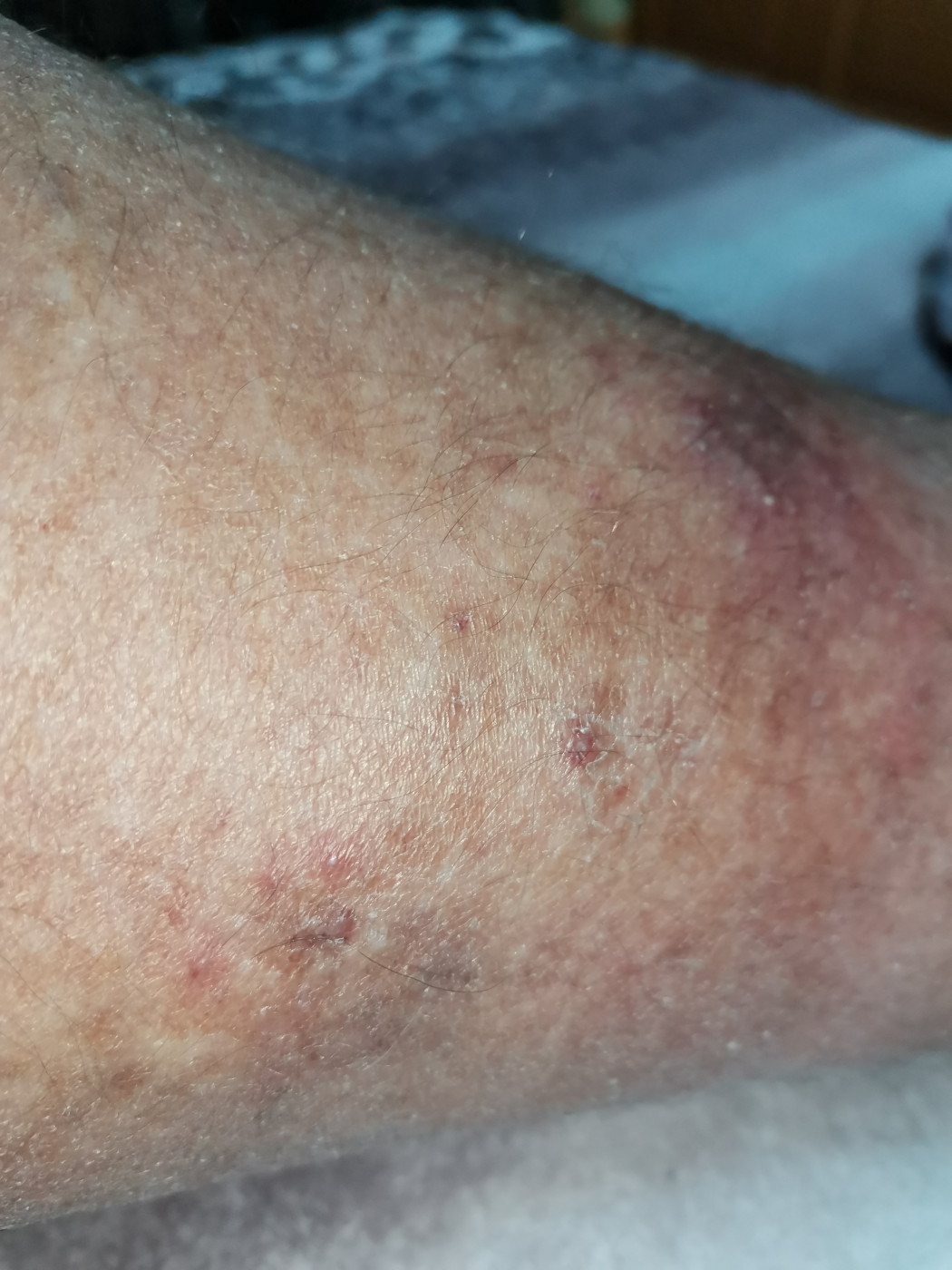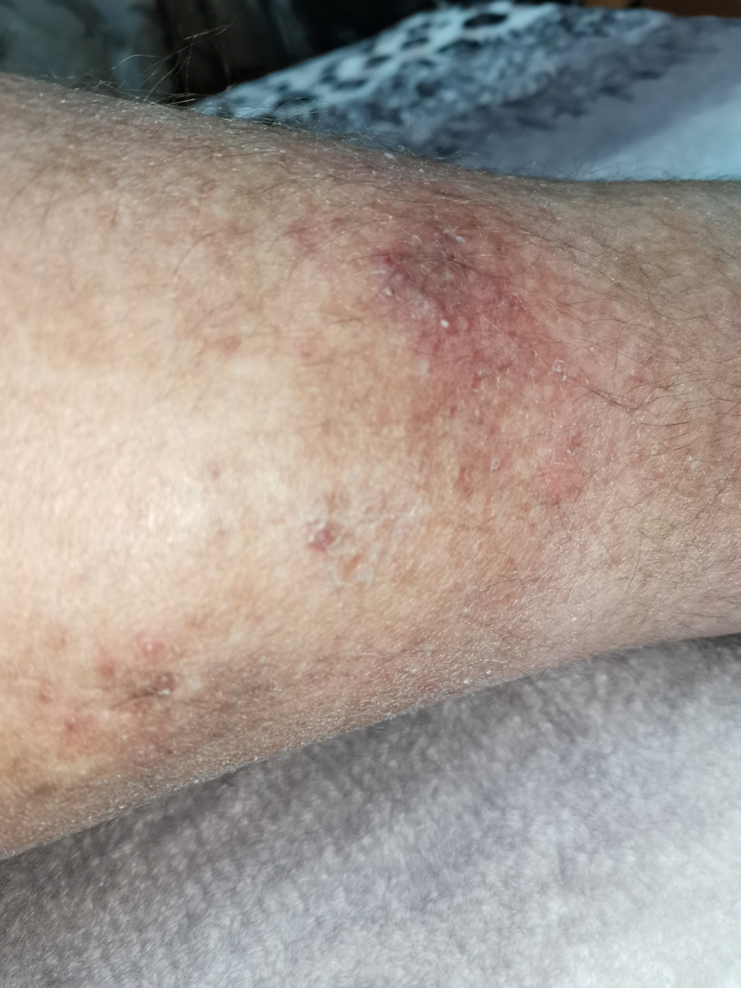 Что это за пятно?Большой вес. На одной ноге у меня появилось вот такое. Что делать с этим? Опасно ли? |