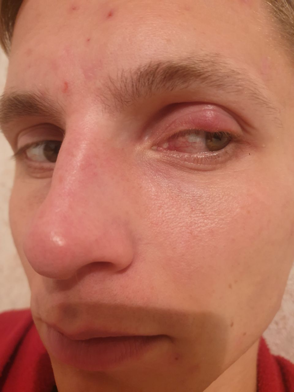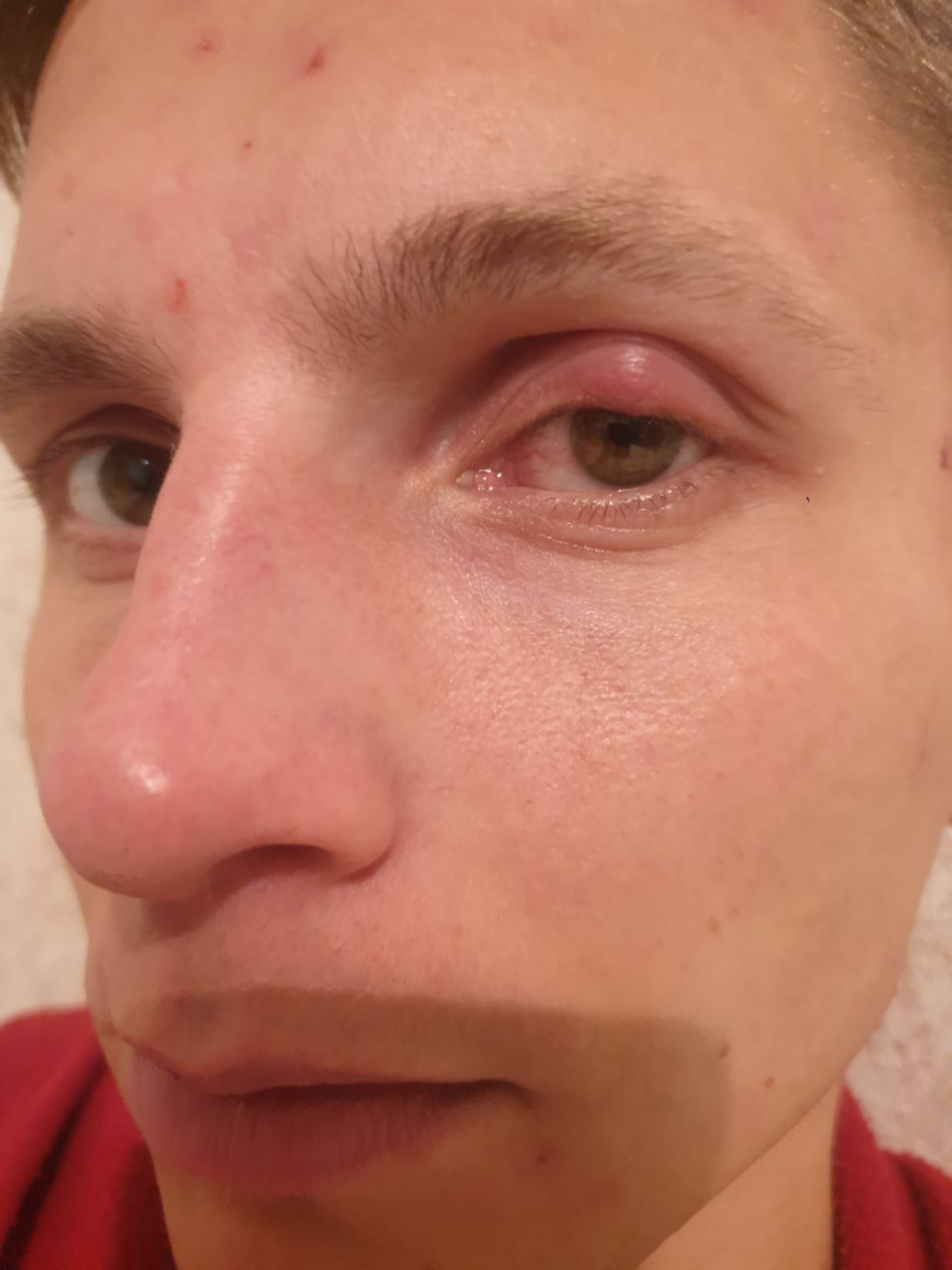 С боку глаза вскочил прыщ