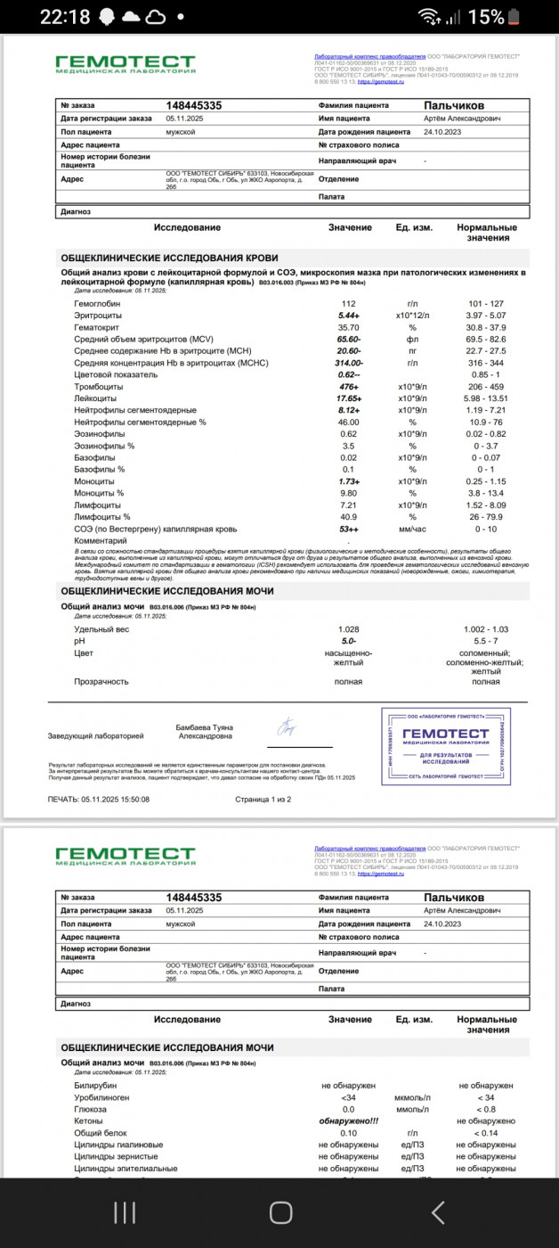 Плохие показатели анализовМогут ли госпитализировать при таких анализах. |