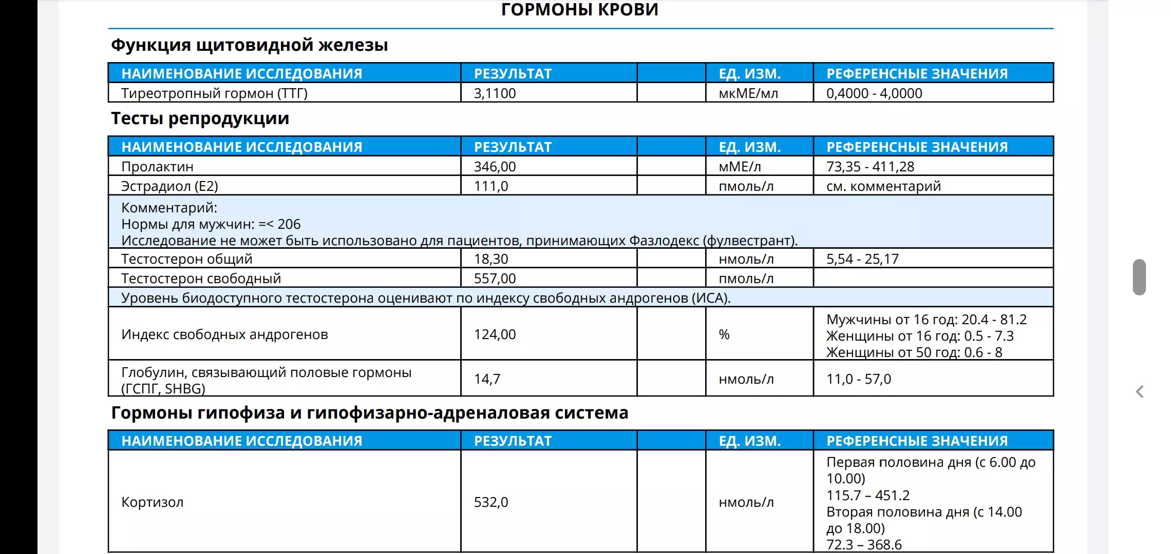 Здравствуйте! Обратилась к врачу-эндокринологу по поводу роста волос на груди, лице. Назначили анализы на гормоны щитовидной железы и половые гормоны. Врач ушла в декретный отпуск, тем в настоящее время не принимает эндокринолог. Результат анализов такой Т4 свободный - 13,2; антитела к ТПО-20,8; тиротропин (ТТГ) 3,07; кортизол 730,2. Что можно сказать по этим результатам?