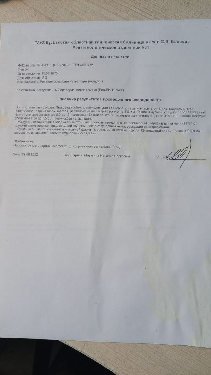 20 лет, Ж. В течение последнего года проблемы с работой желудка: частое срыгивание (не рвота) пищи после еды (может наблюдаться в течение нескольких часов). Особенно в случае употребления свежих фруктов или овощей. Болей нет, но иногда бывает изжога. Непереваренная пища из желудка забрасывается в ротовую полость вместе с желудочным соком, после чего ощущается жжение в пищеводе.