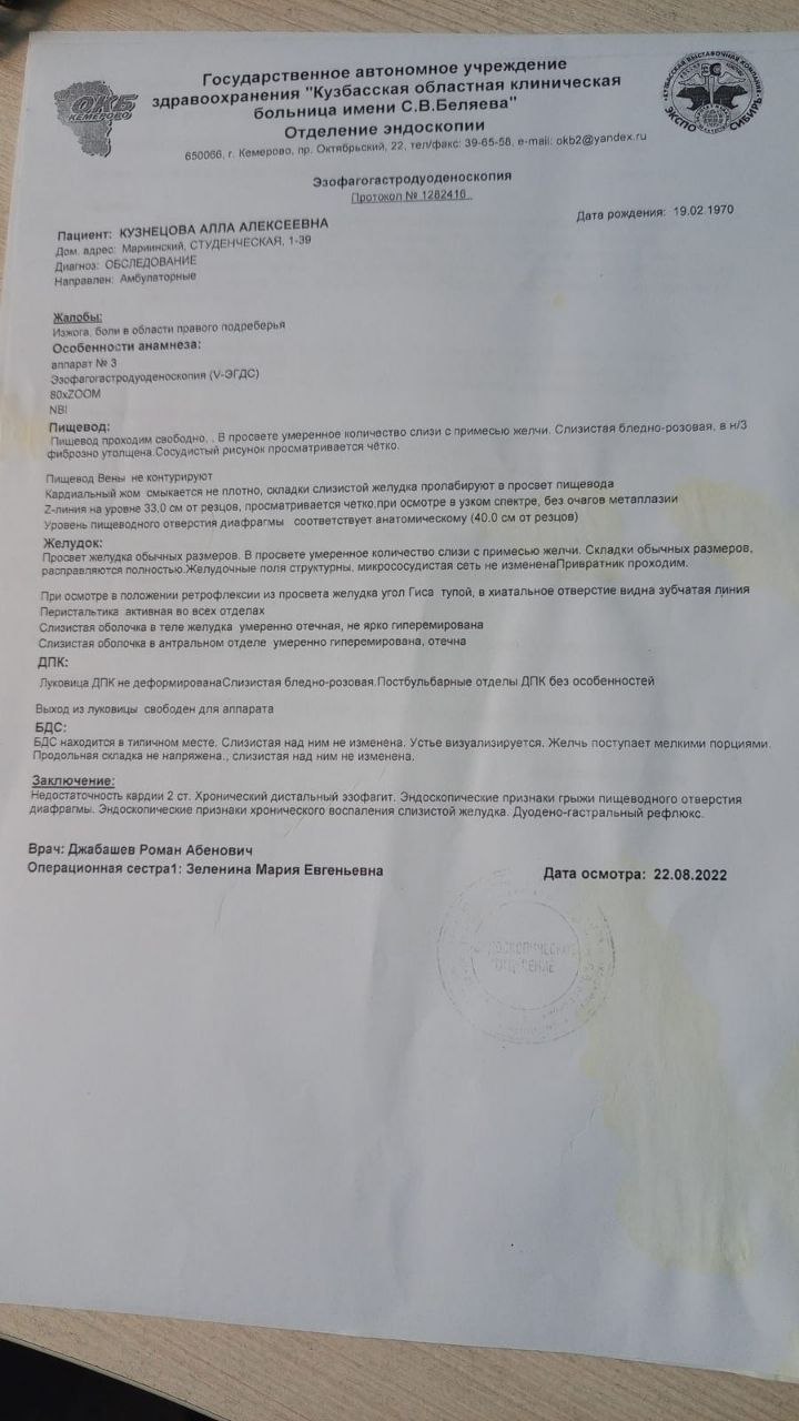 Здравствуйте. Вы не указали, провели ли лечение по назначению гастроэнтеролога, с каким результатом. От этого зависит и дальнейшая тактика. Посетите гастроэнтеролога повторно после курса терапии. Так же проконсультируйтесь у терапевта. |