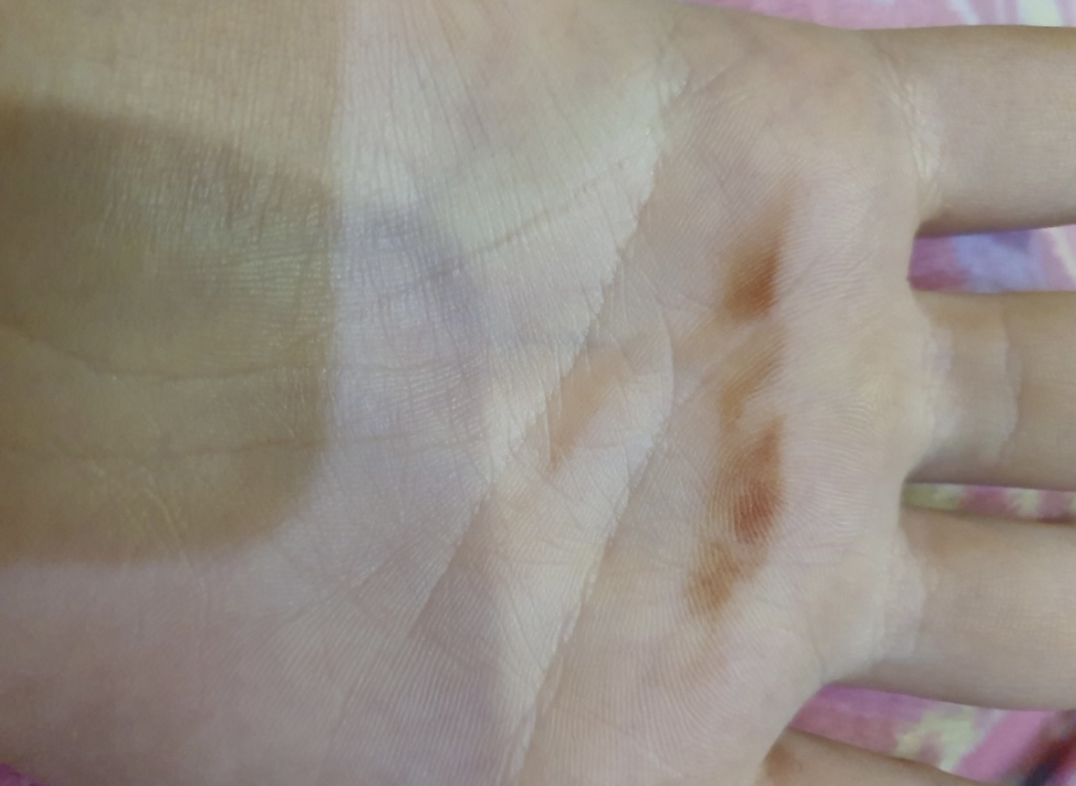 На внутренних сторонах ладоней раз в месяц появляются небольшие красные пятнышки.