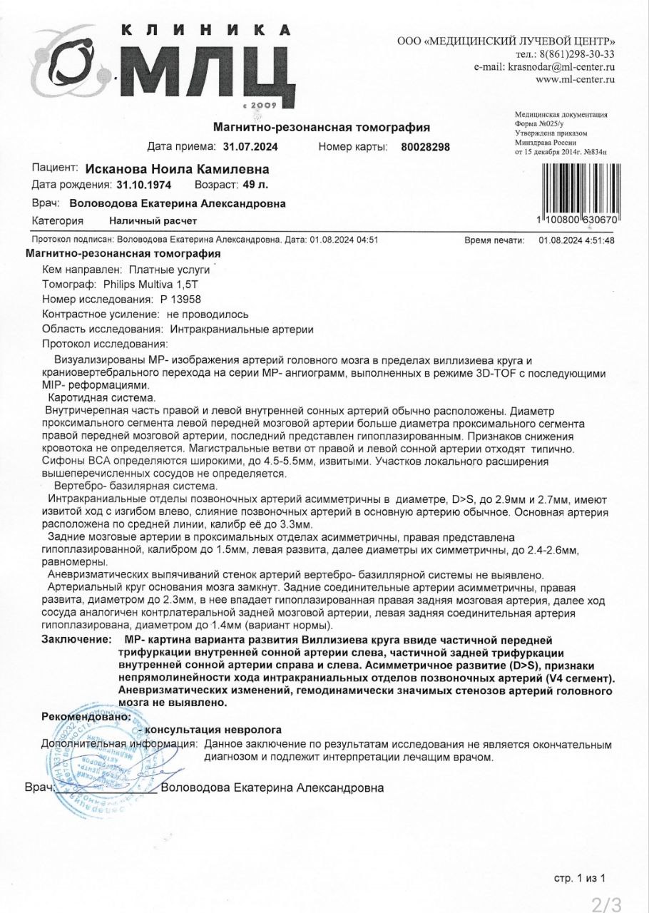 Помогите пожалуйста разобраться с результатами мрт шоп и дуплексным сканированием головы и шеи