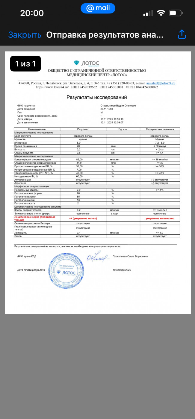 Получил результат спермограммы, вот данные, посмотрите пожалуйста, с такими показателями зачать реально: