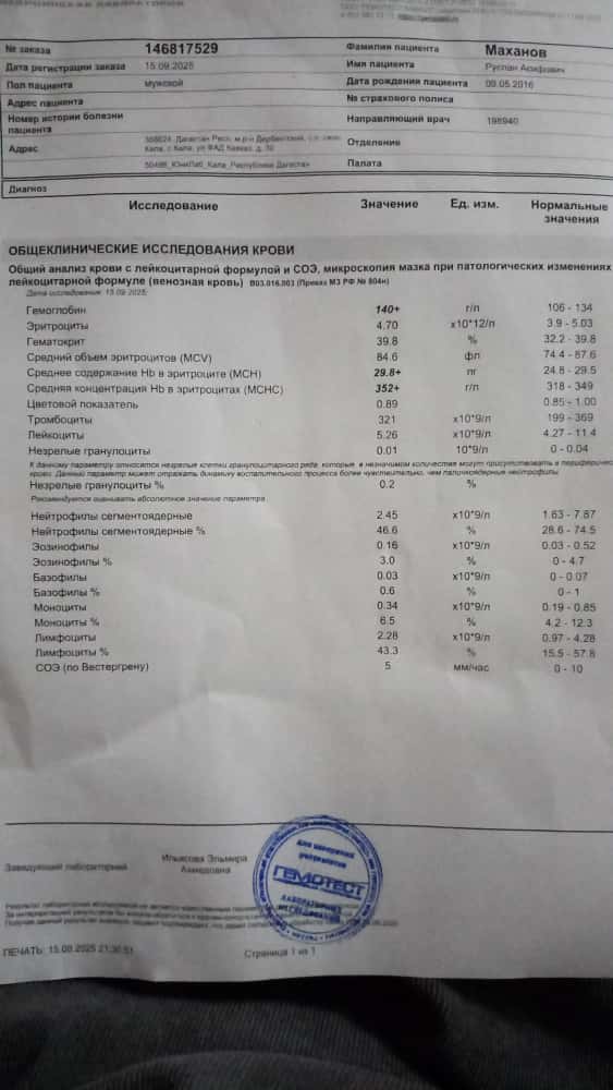 Здравствуйте, доктор! Столкнулся с ситуацией: сделали анализ крови, а результаты записаны на листке от руки. И тут какие-то сокращения, которые я не могу понять: НB - 134, ЭР - 4,3, LE - 13,2. Может Вы поможете расшифровать, что это обозначает?