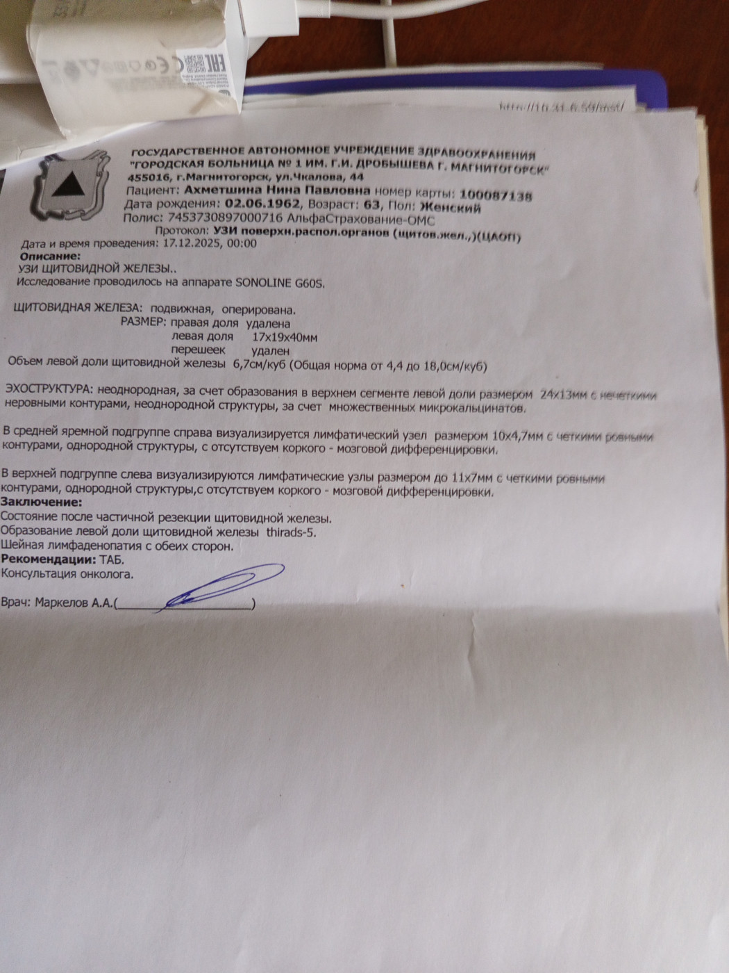 Результаты УЗИЗдравствуйте! Мне 63 года, женщина. Сделала УЗИ щитовидной железы. Скажите, пожалуйста это онкология? |