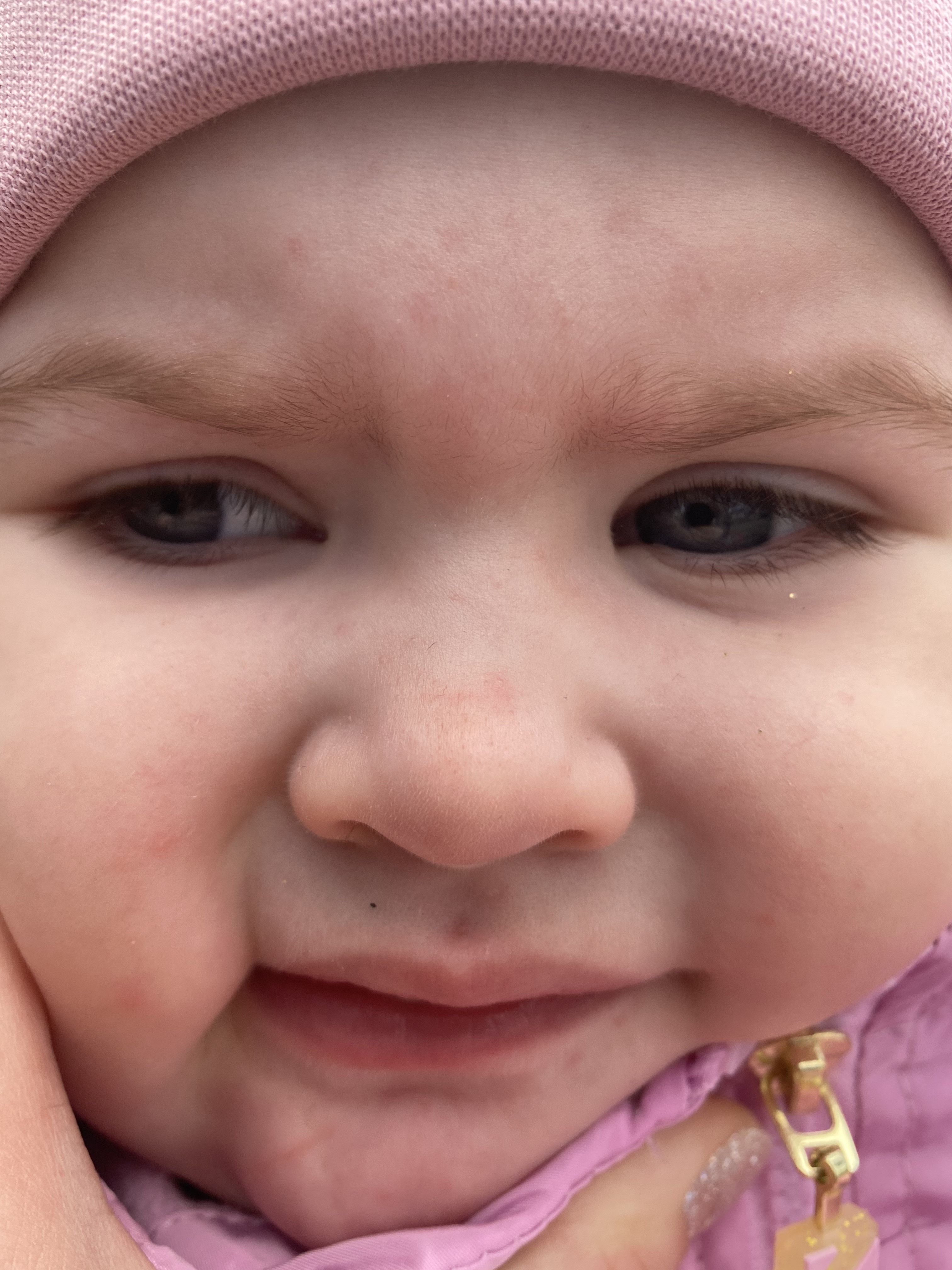 Сыпь у ребёнка. Дочке 1.10 сегодня заметила сыпь на лице. Что это может быть?
