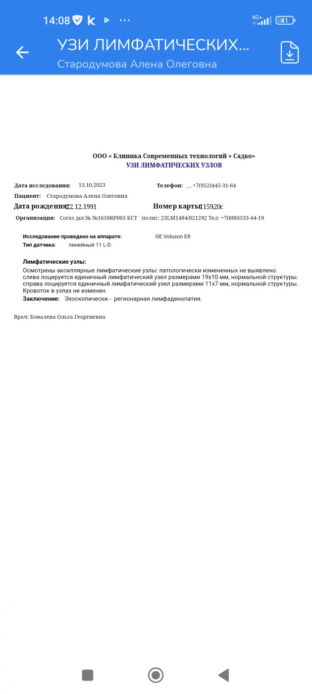 | 👍 0 👎 | Увеличены лимфоузлы    |