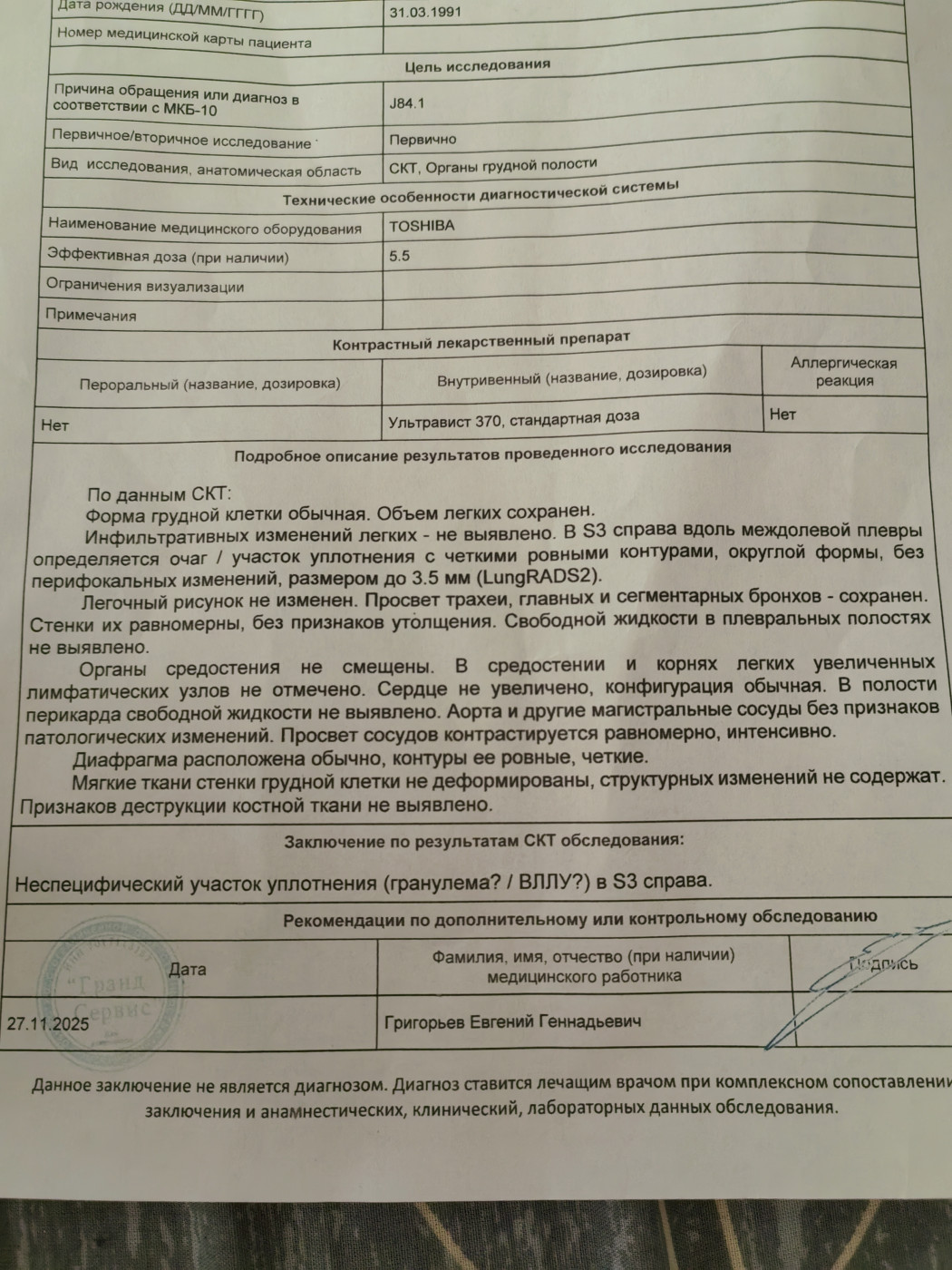 У меня подозрение на туберкулез легких!Помогите пожалуйста понять диагноз по протоколу обследования КТ легких.Врача увижу только завтра,но уже сил нет думать есть у меня туберкулёз,или нет! КОМПЬЮТЕРНАЯ ТОМОГРАФИЯ: