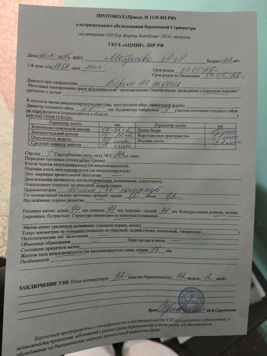 Первое узи 08.04.2019 показало срок 14 недель,в заключении скрининга по крови написали срок беременности по Ктр 13 недель и 6 дней.ПДР написали 08.10.2019