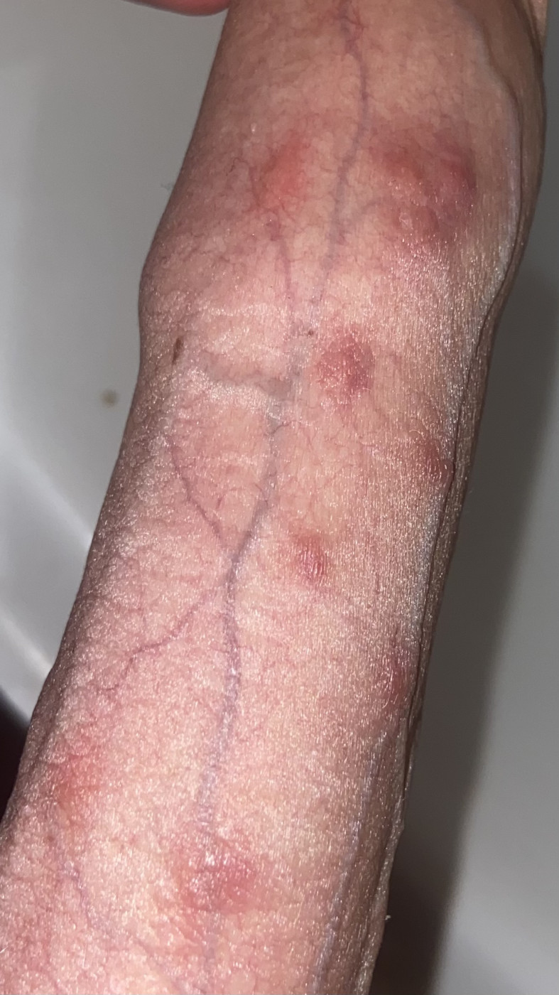 Высыпание на коже спины красными волдырями локальное размером 6 на 4 см.чешется при надавливании болезненно.