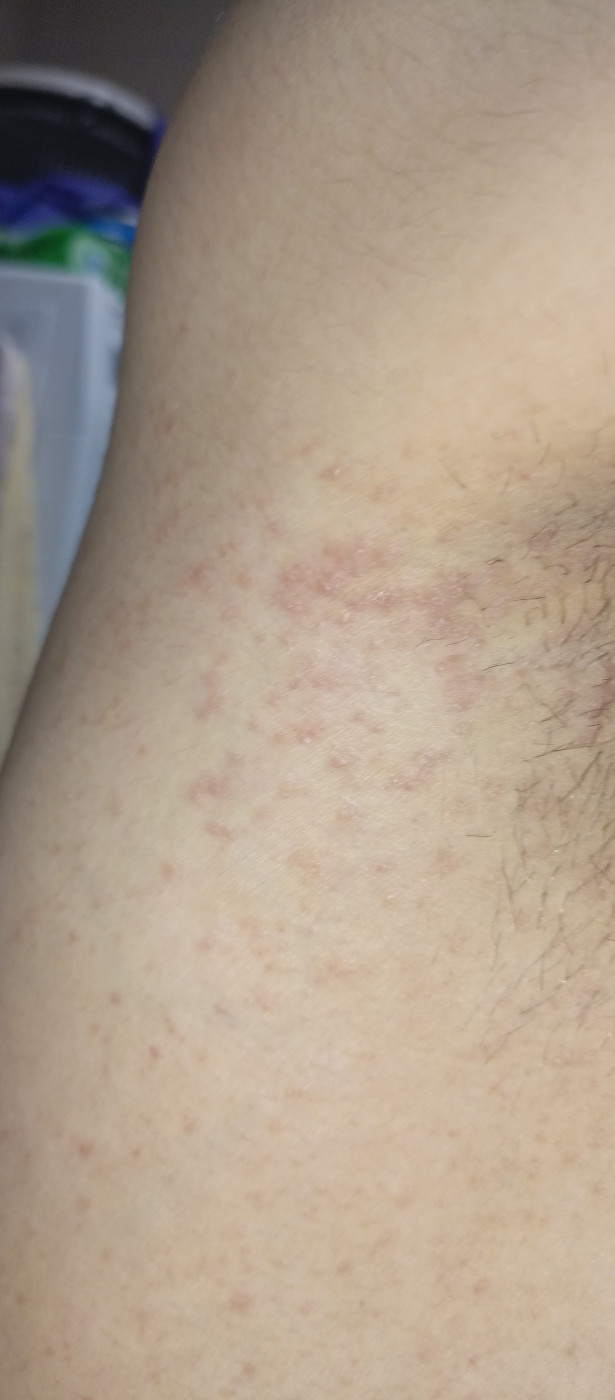 Добрый день! 2 для назад появилось высыпание в области подмышки. Пятно локализуется в одном месте, зуда нет, при пальпации небольшой дискомфорт. Что это может быть?