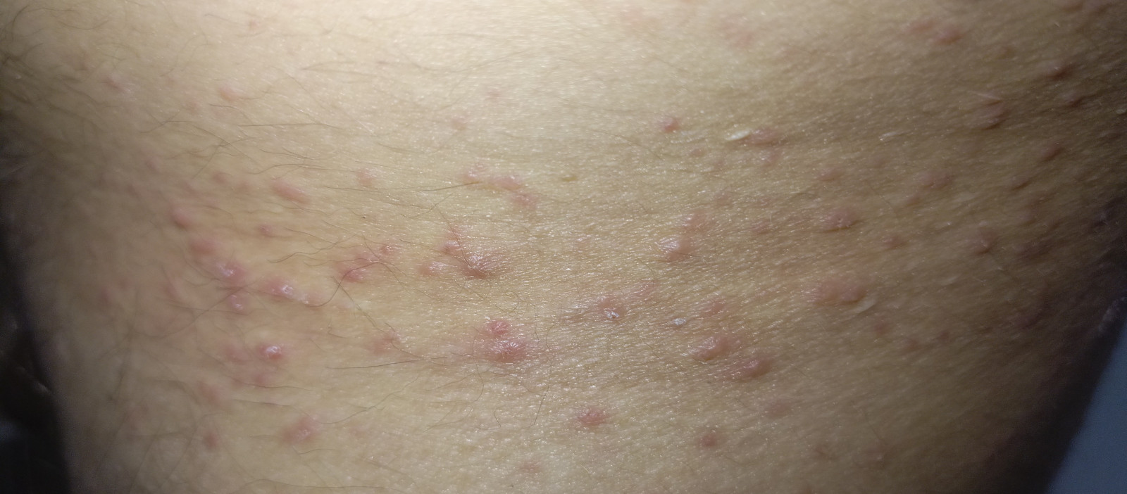 Здравствуйте! У мужа появились высыпания в области подмышки, они не чешутся и не беспокоят, потом появилось в паху, вот там очень чешется! Подскажите что это может быть?первое фото в паху второе у подмышки